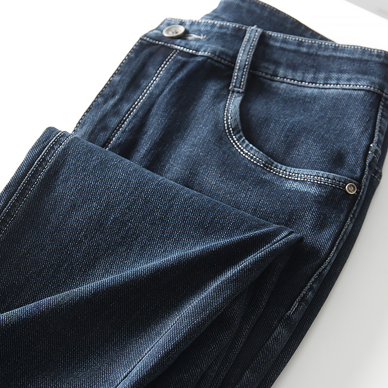 淘富贵鸟高端男士牛仔裤男直筒四面弹力秋冬厚款中年高腰商务休闲裤