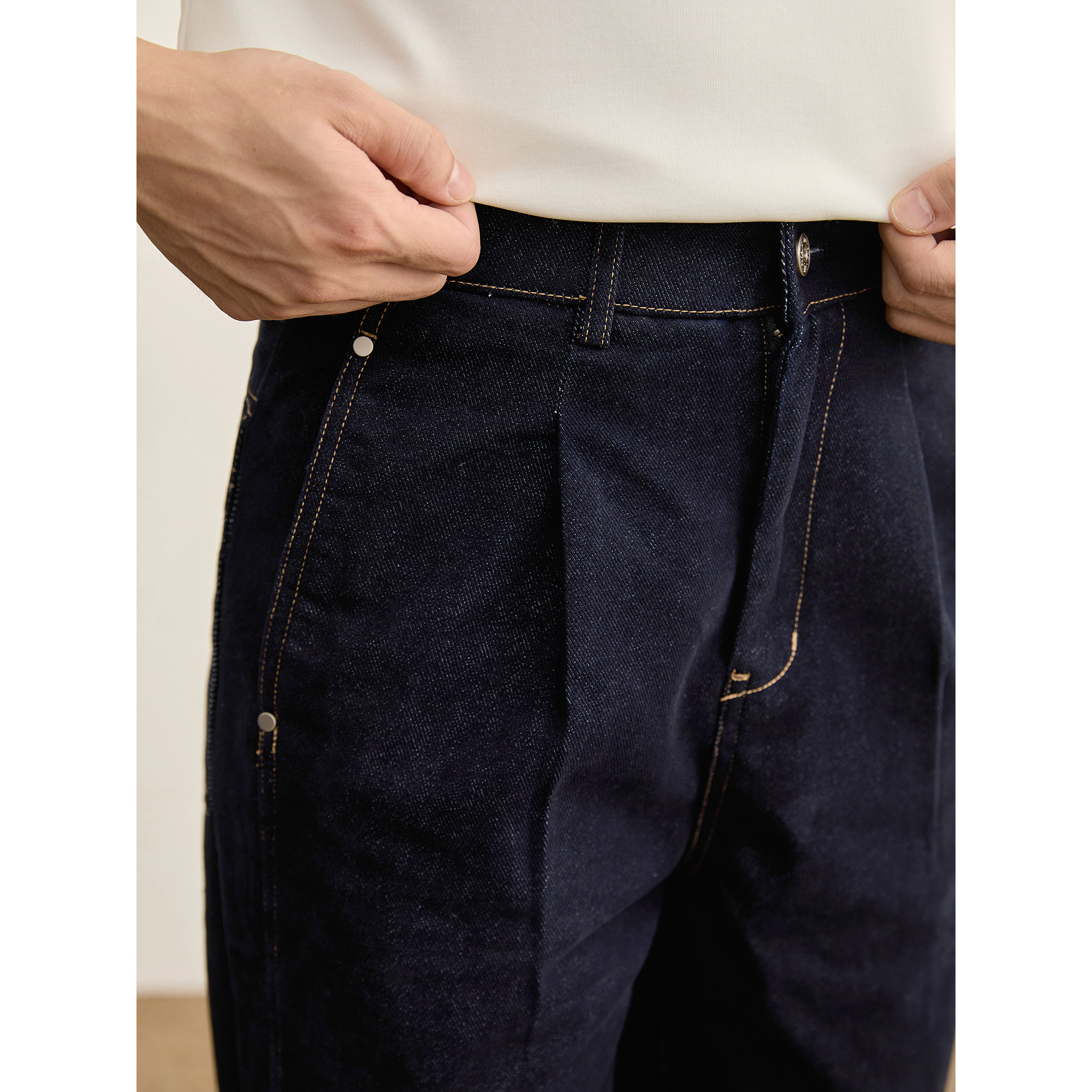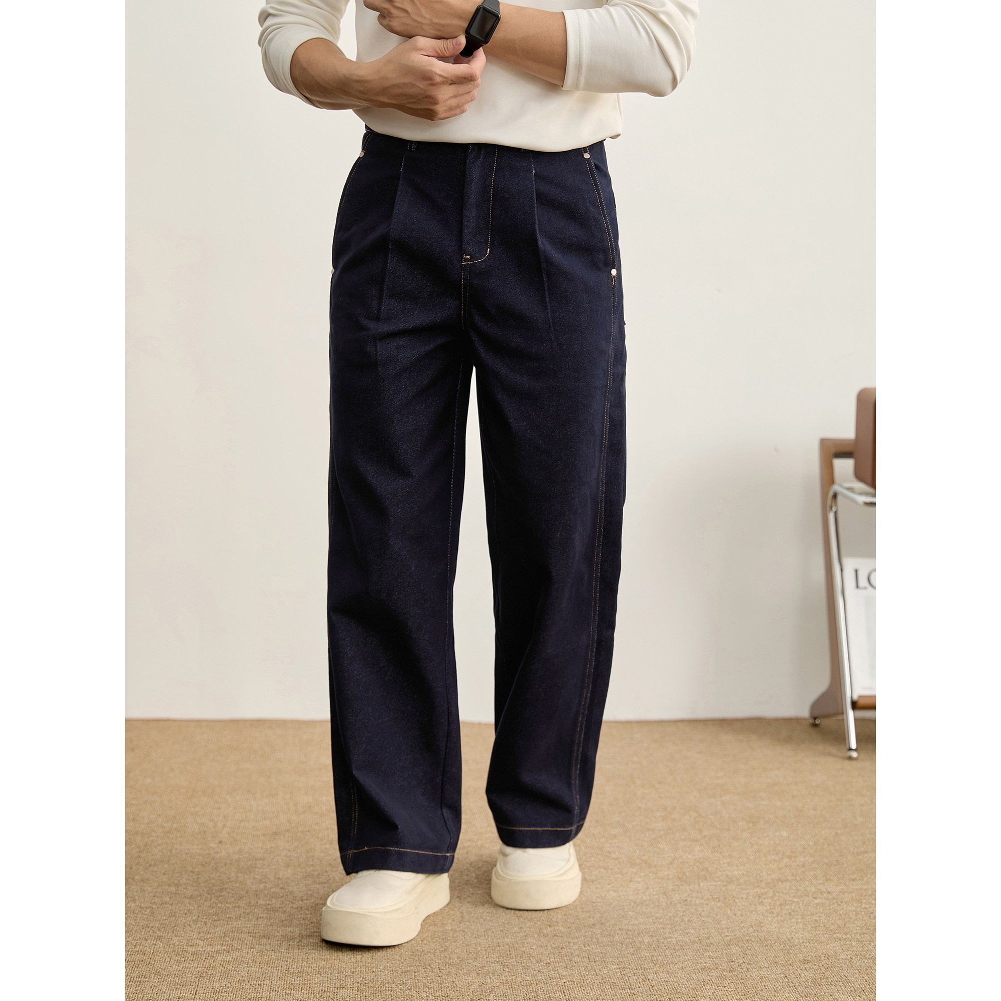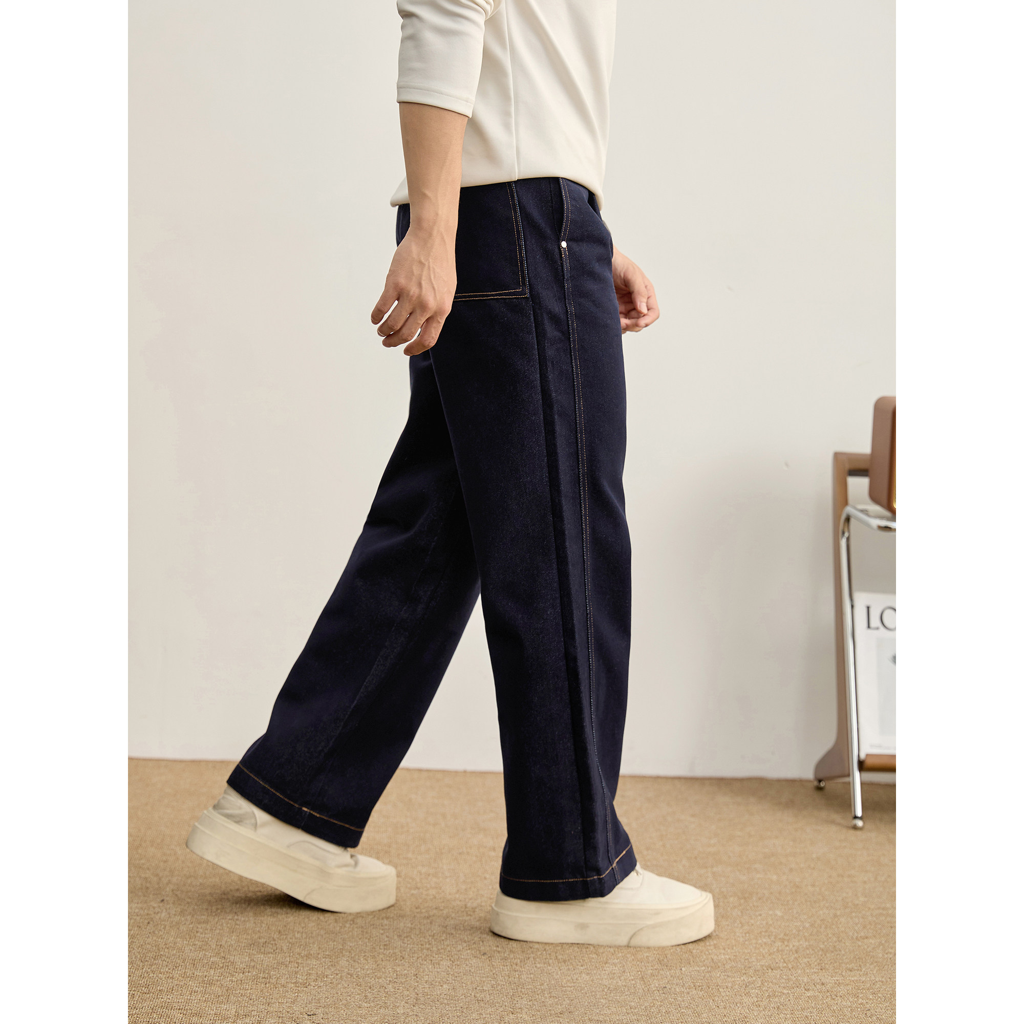 淘水洗重磅深蓝色牛仔裤|13oz冈山宽幅休闲长裤男直筒宽松中高腰秋
