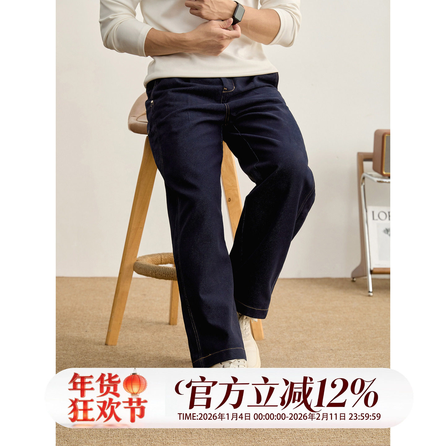 淘宝LUUD 铆钉辑明线水洗棉直筒牛仔裤男秋冬立体裁剪半松紧腰阔腿裤