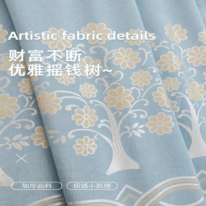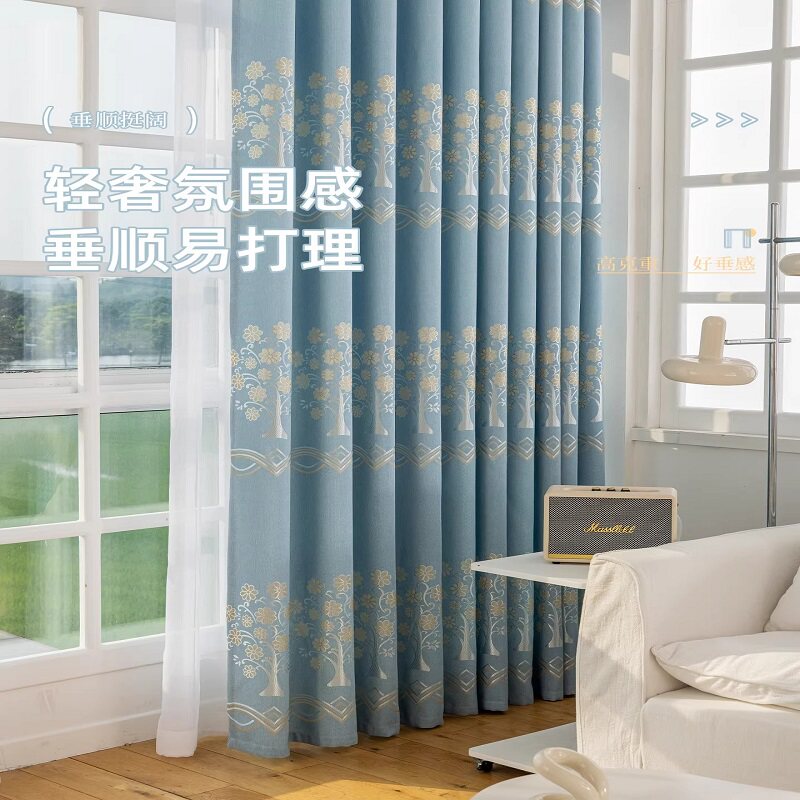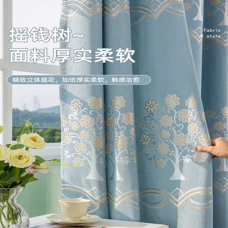 天新款月枝影纱帘轻奢简约法式窗帘透光不透人遮光卧室客厅窗帘纱