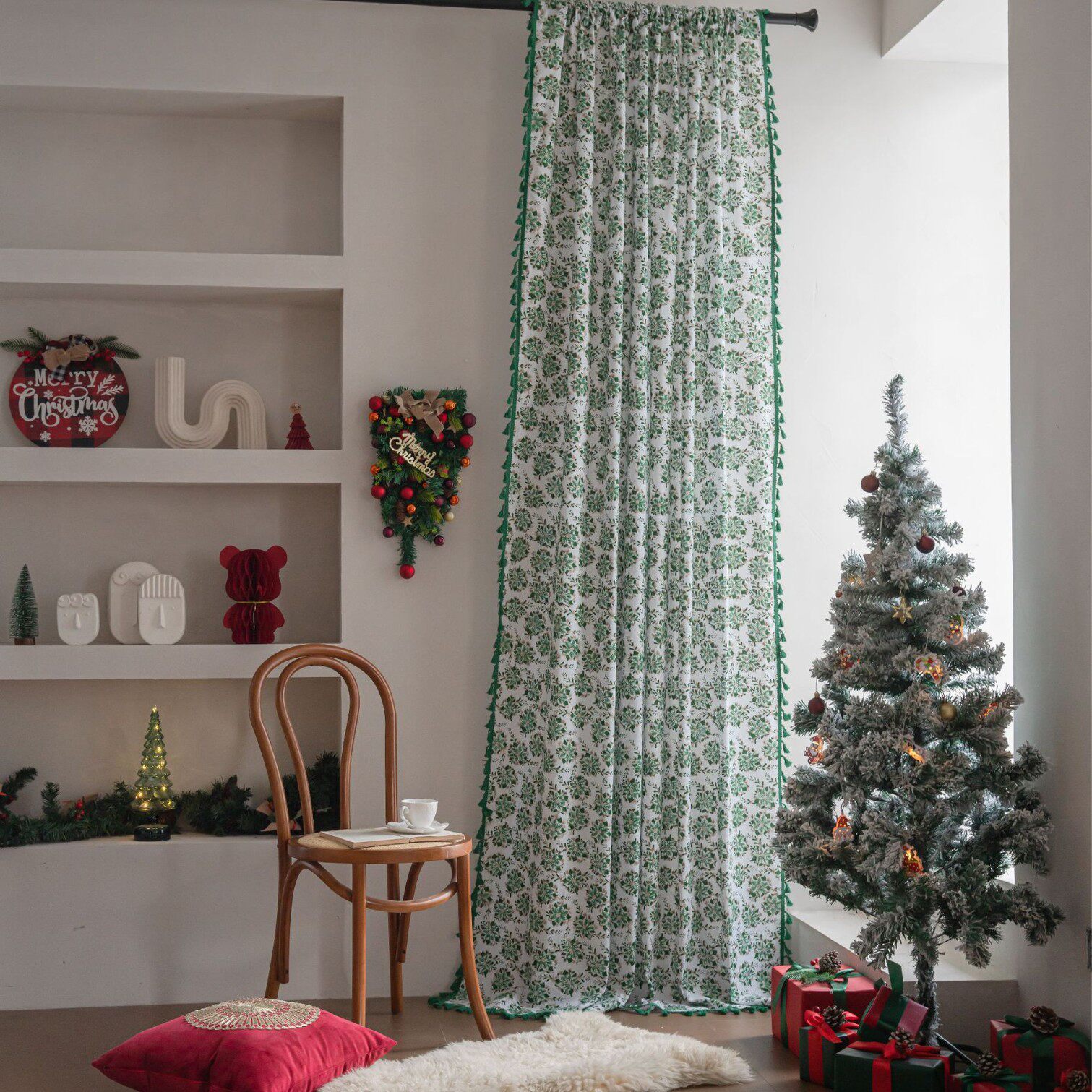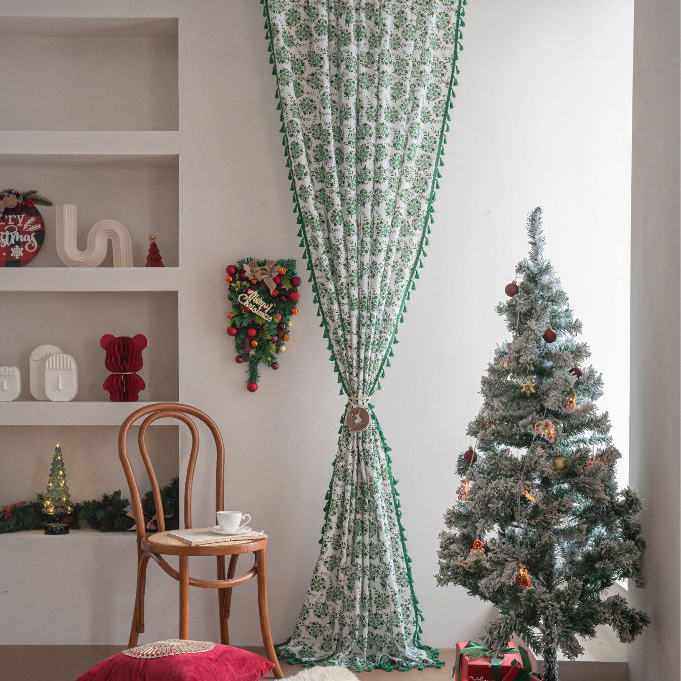 伊缦琪韵窗帘“绿色圣诞烫金冬青叶”系列,以经典节日元素为灵感,将浓郁绿意与烫金冬青叶图案巧妙融合,营造出温馨雅致的节日氛围。采用高品质半遮光面料,有效柔化光线,保护隐私的同时保持室内明亮通透,特别适合厨房、飘窗、阳台等小空间使用。精致工艺打造出细腻纹理与立体烫金效果,提升整体质感。简约而不失设计感的半帘款式,既实用又美观,轻松点缀家居角落。无论是圣诞装饰还是日常使用,都能为空间增添一抹自然灵动的艺术气息,是现代家居的理想选择。