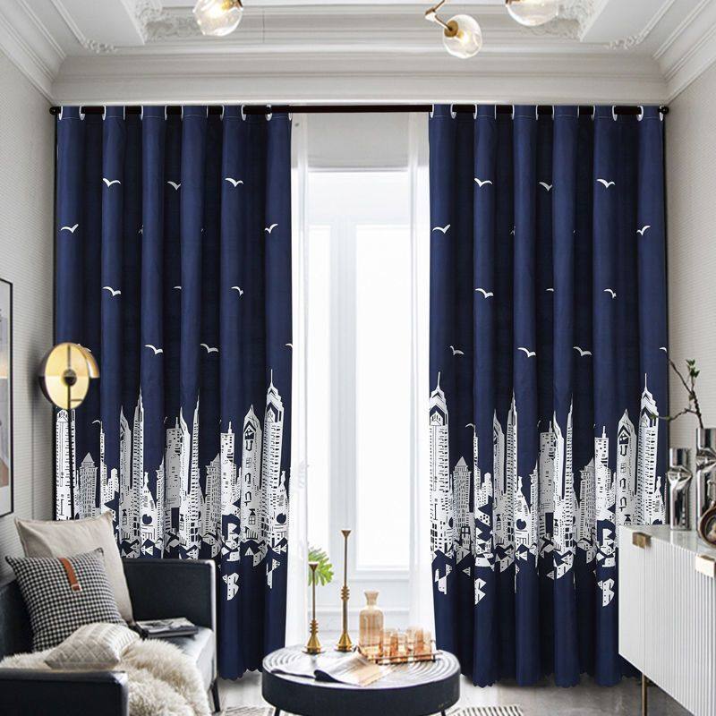 天印花遮光遮阳布不透光免打孔安装魔术贴试小窗户阳台飘窗遮光窗帘