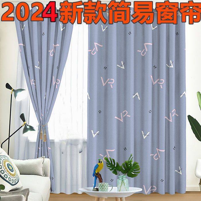 淘宝新款简约现代挂钩打孔式窗帘成品租房阳台飘窗卧室客厅半遮光窗帘