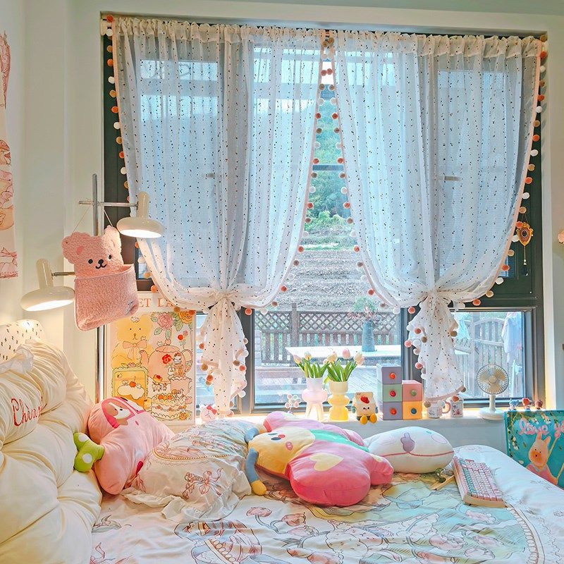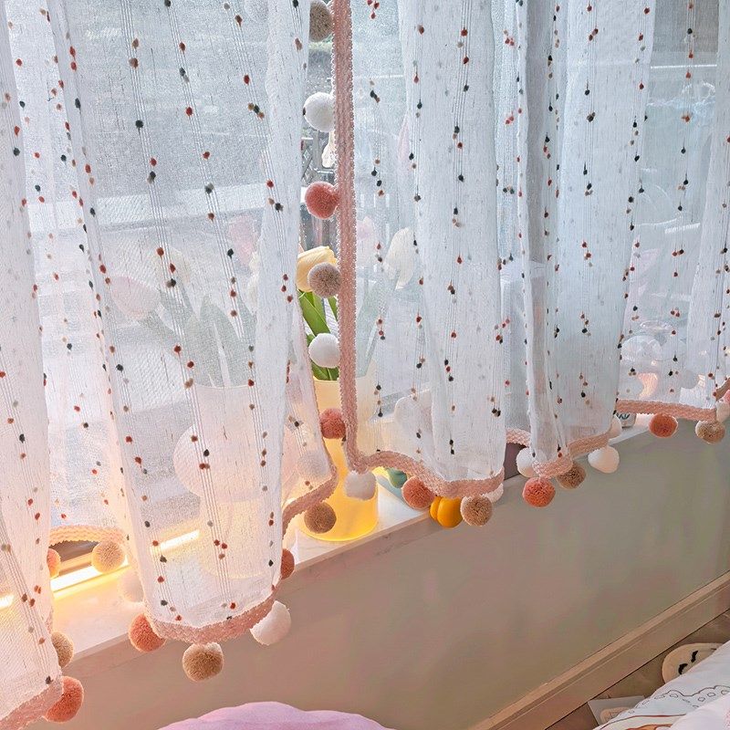 淘宝卧室复古梦幻帘伸缩杆窗帘儿童房阳台半截短帘粉色房间窗户遮挡帘
