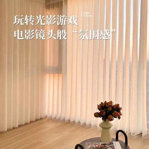 淘竖百叶窗帘纱帘透光不透人阳台飘窗半遮光加厚防刮垂直白纱梦幻帘