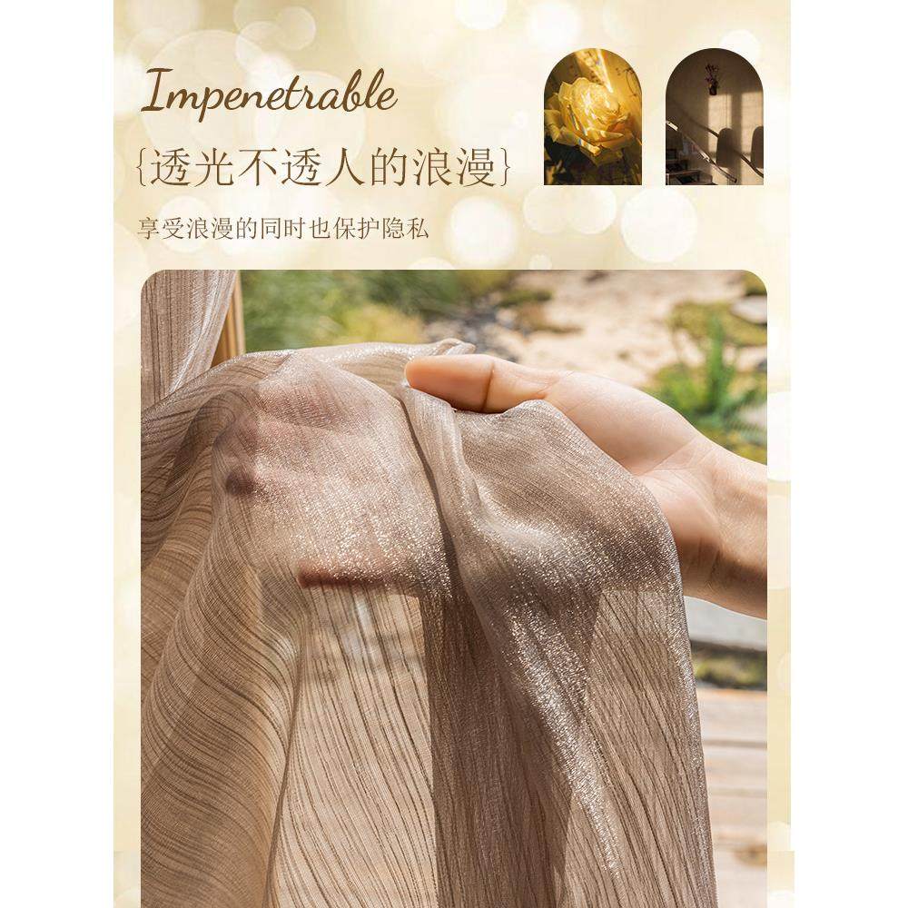 淘法式流金纱帘透光半透人窗纱飘窗帘阳台高级轻奢鎏金纱客厅梦幻帘
