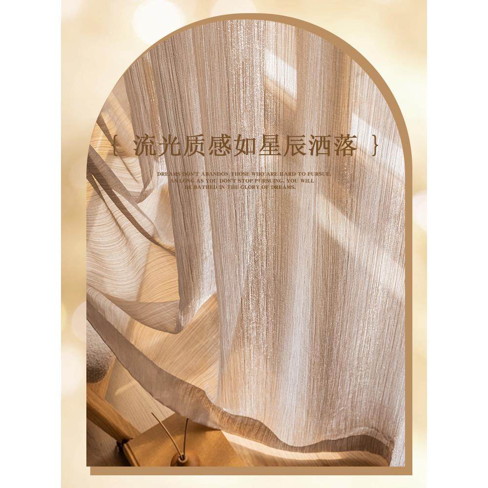 法式流金纱帘透光半透人窗纱飘窗帘阳台高级轻奢鎏金纱客厅梦幻帘