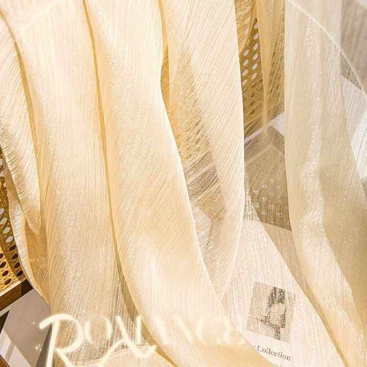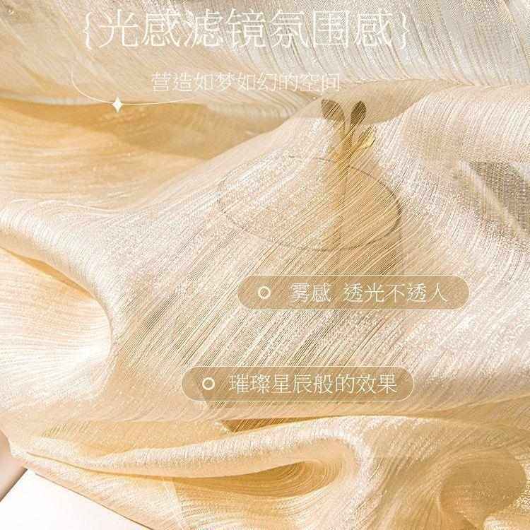 淘宝法式流金纱帘透光半透人窗纱飘窗帘阳台高级轻奢鎏金纱客厅梦幻帘