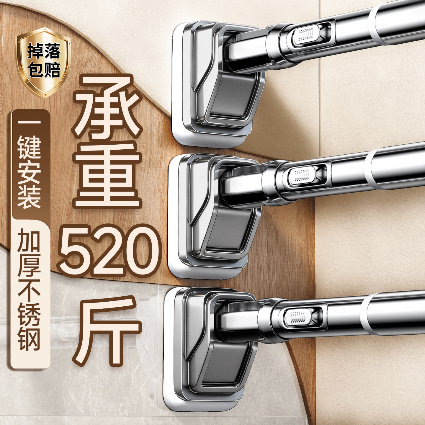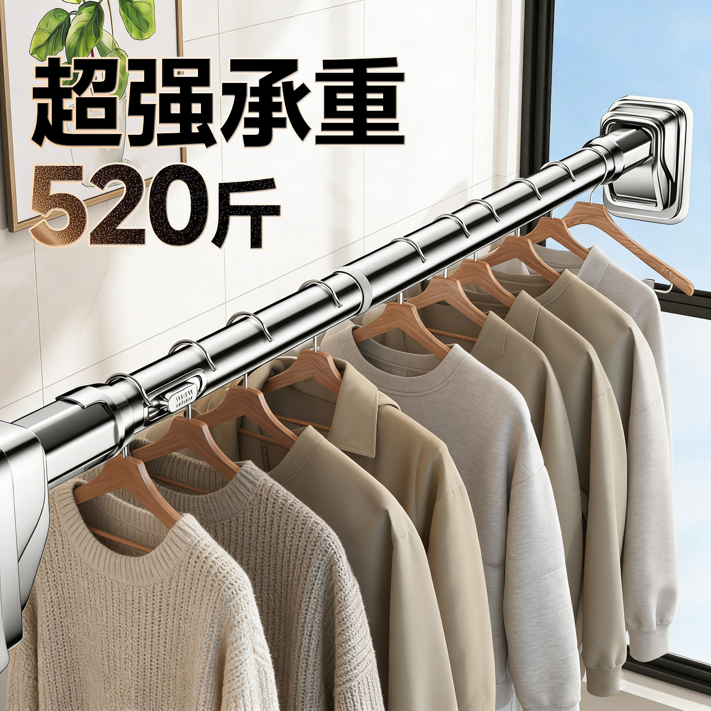 天猫免打孔伸缩晾衣杆窗帘浴帘支撑杆卫生间强力承重不锈钢凉衣挂衣架