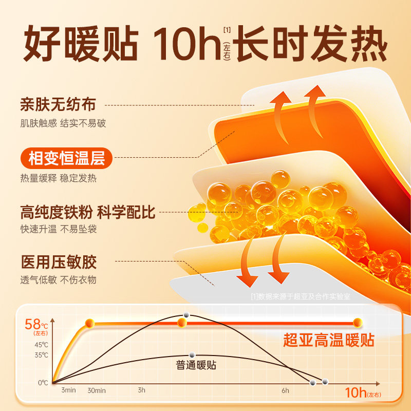 超亚高温暖贴宝宝贴是一款专为保暖设计的自发热热帖,采用优质铁粉、活性炭及矿物材料,接触空气后可持续发热12小时以上,温度稳定在50℃左右,安全舒适。产品通过国家质检认证,无异味、不烫伤,适合贴于腹部、腰部、背部等部位,尤其适合女性宫寒、经期保暖及冬季户外防寒使用。外包装设计贴心,粘贴牢固,透气性好,可轻松贴合衣物。超亚官方旗舰店直供,确保正品品质,支持防伪查询。无论是日常保暖、运动防护还是缓解肌肉酸痛,都是理想选择。温暖随身,健康相伴,让寒冷季节多一份贴心守护。