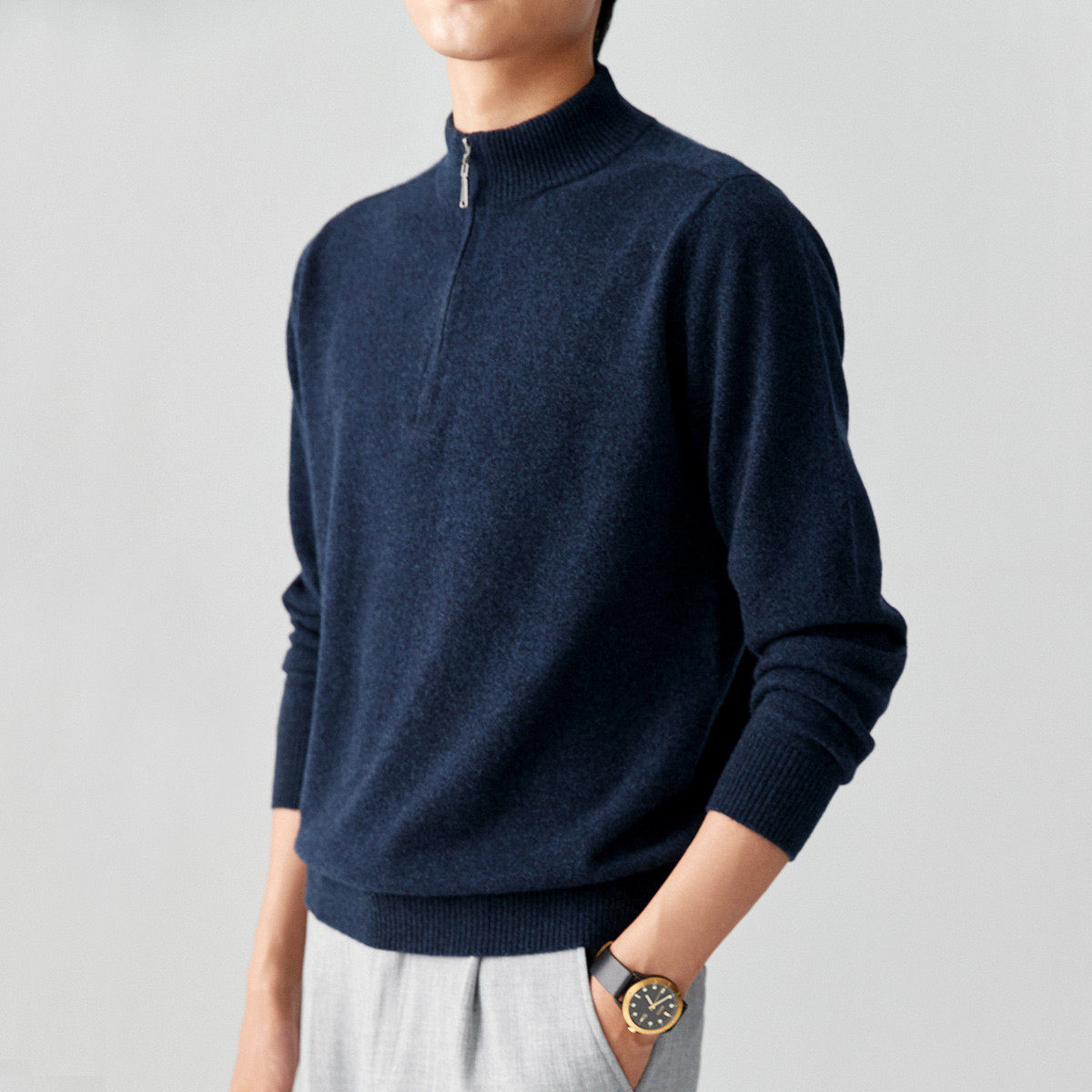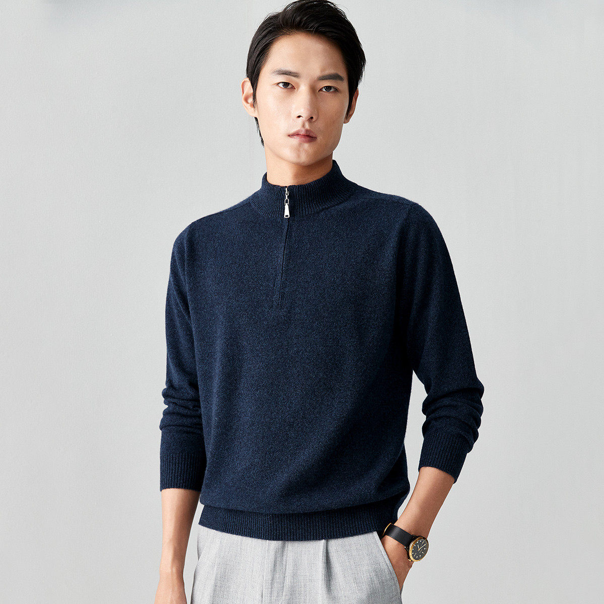 帕罗纯羊绒23秋冬新款拉链半高领Polo衫,精选100%优质山羊绒,触感细腻柔软,轻盈保暖,尽显高端品质。半高领设计搭配精致拉链开合,兼顾防风保暖与穿脱便利,轻松打造都市休闲或商务便装风格。经典Polo版型修身有型,袖口与下摆罗纹收口,贴合身形又不失舒适。秋冬穿着既显儒雅气质,又兼具实穿性。无论是单穿还是内搭,都能展现男士低调奢华的品味。帕罗纯羊绒,以匠心工艺诠释温暖与格调,是秋冬衣橱不可或缺的优雅之选。
