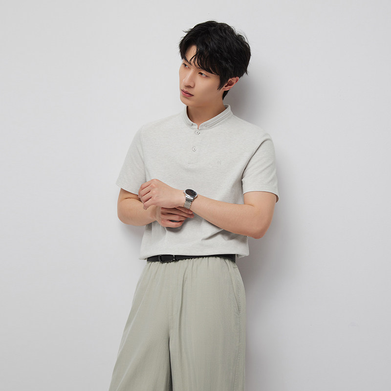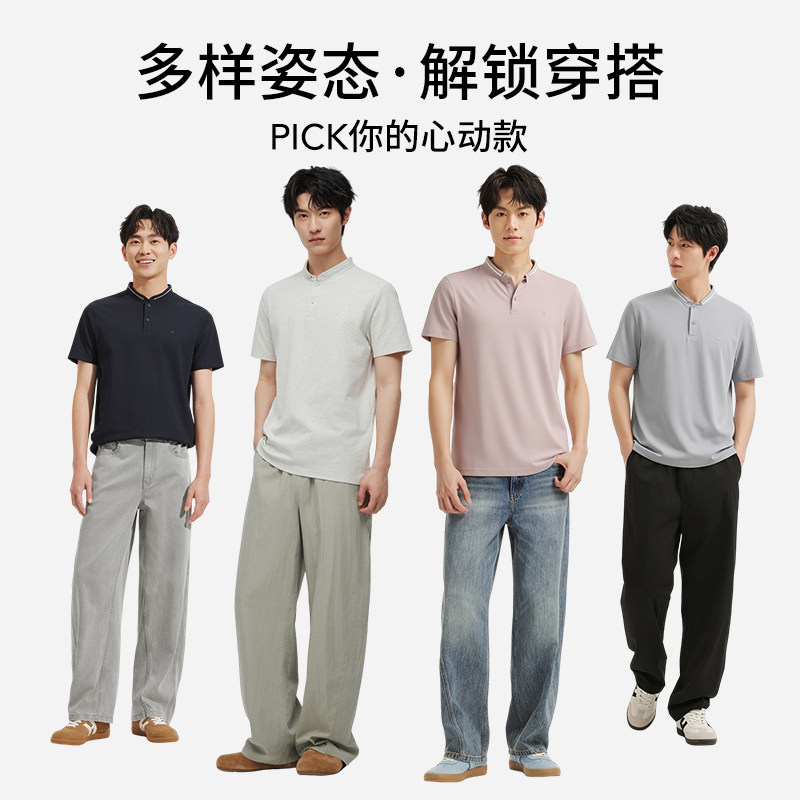 天猫热风凉感男士短袖T恤上衣2026年夏季新款立领商务休闲POLO衫短袖