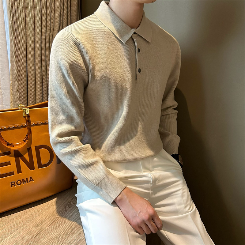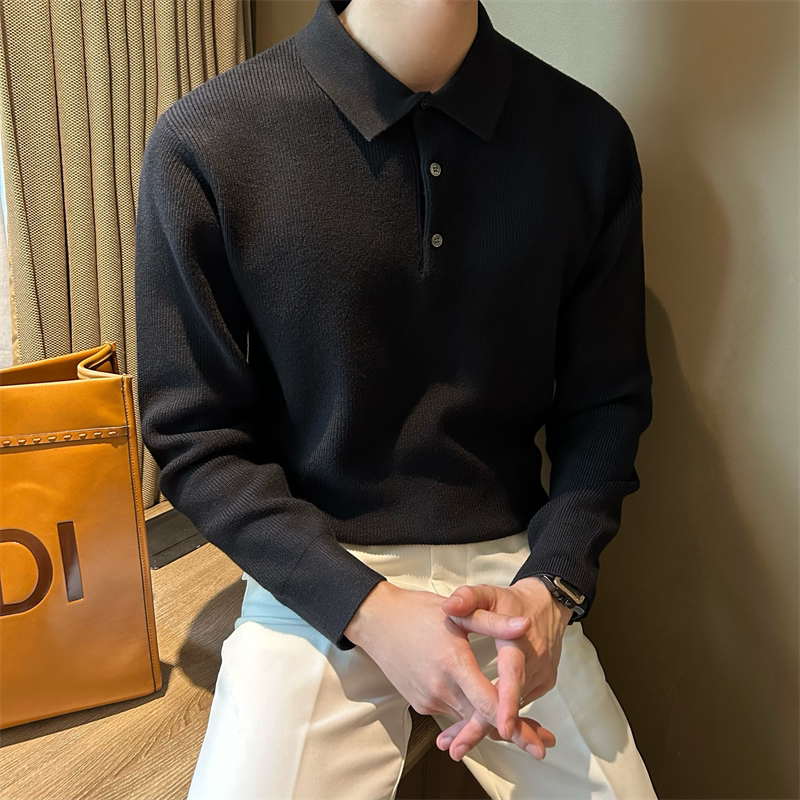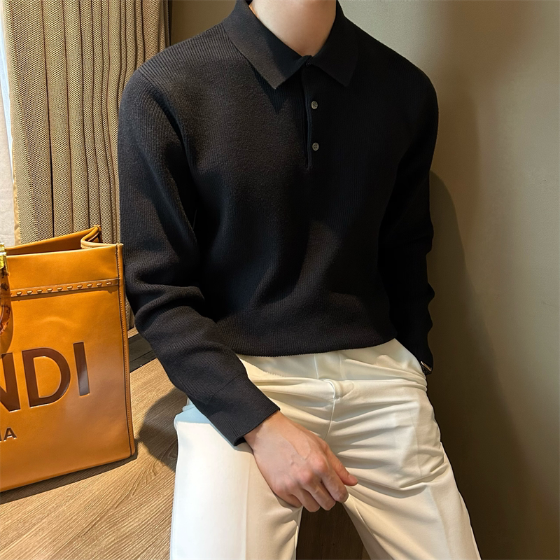 淘宝NR先生纯色修身细条肌理翻领男毛上衣简约净色轻熟长袖polo针织衫