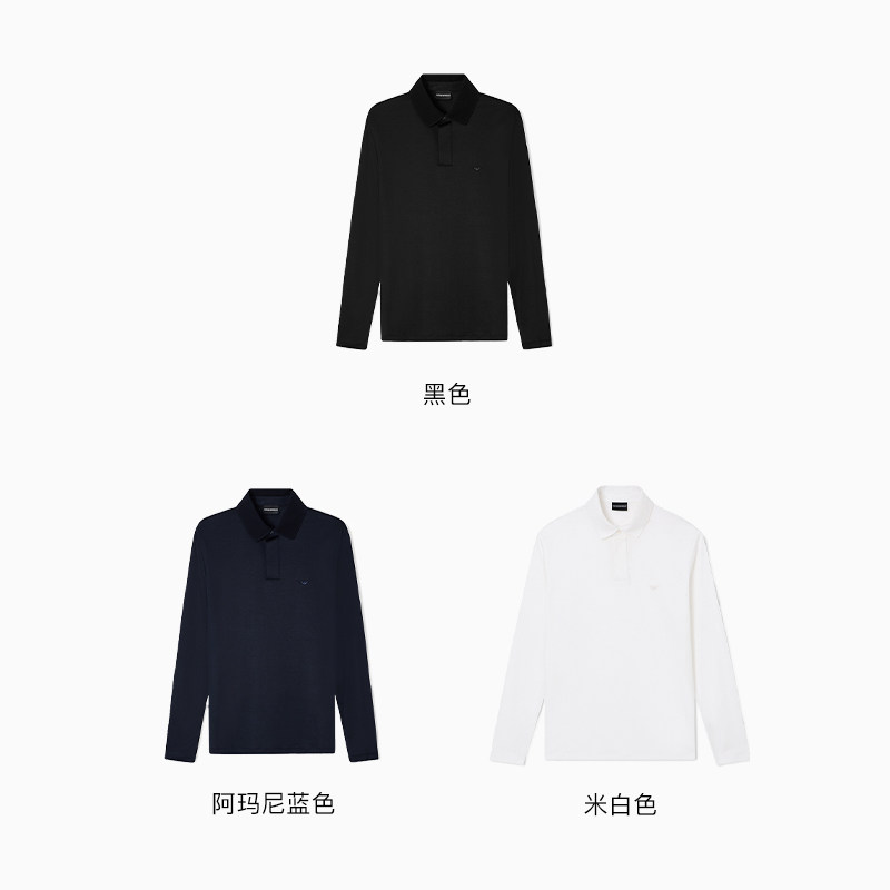 天猫EMPORIO ARMANI/阿玛尼春季新款男士莱赛尔棉翻领长袖刺绣Polo衫