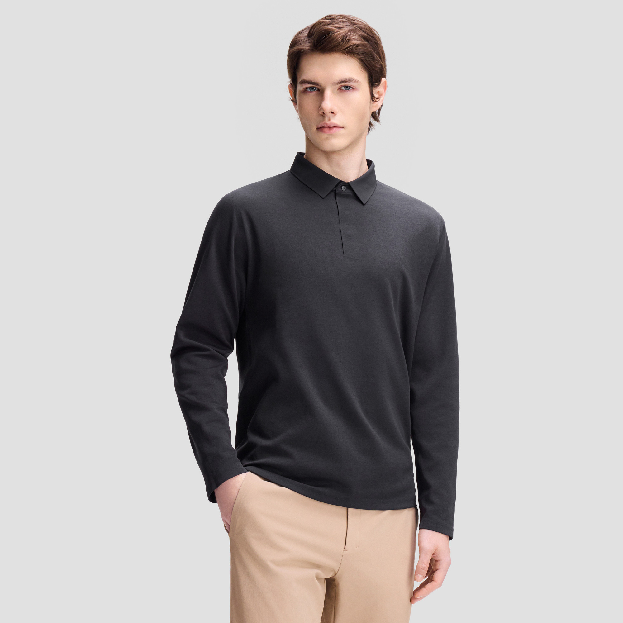 DESCENTE迪桑特DUALIS系列都市通勤男士SOLOTEX弹性长袖POLO衫,专为现代都市男性打造,融合科技功能与简约设计。采用SOLOTEX高性能弹性面料,具备优异的四面弹力与抗皱性,活动自如,久穿不易变形。面料兼具透气排湿与轻量保暖特性,适应多变天气,满足全天候通勤需求。经典POLO领型搭配长袖剪裁,干练利落,轻松应对商务休闲场景。细节处注重品质,如精致车线、舒适袖口与下摆设计,彰显品牌匠心。DUALIS系列以“都市机能”为核心理念,将运动科技与日常穿搭完美结合,是追求舒适与格调男士的理想之选。