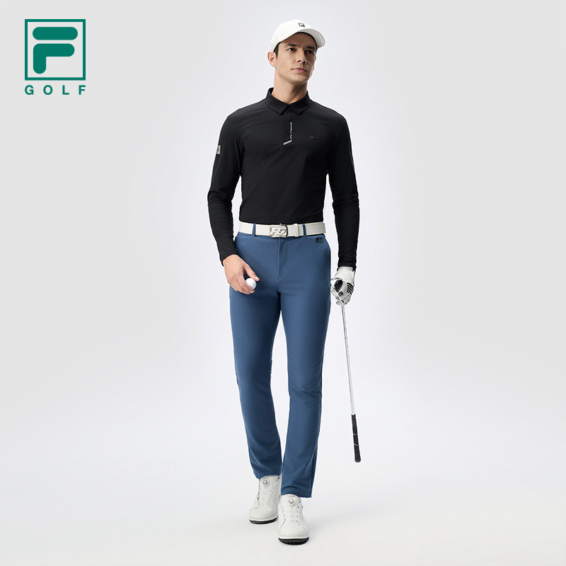 FILA 斐乐官方男子针织长袖POLO衫2025冬新款高尔夫运动基础上衣