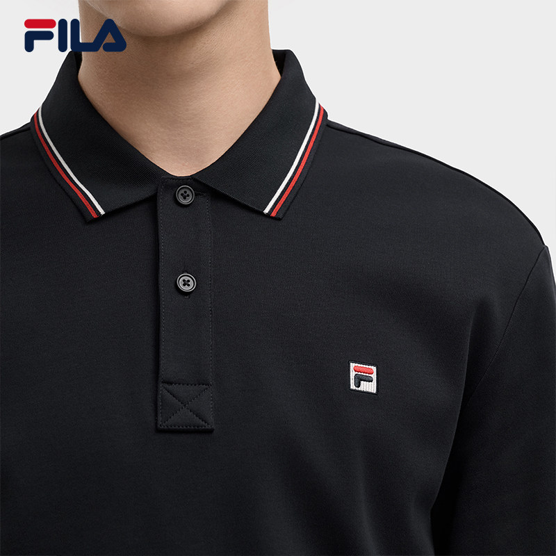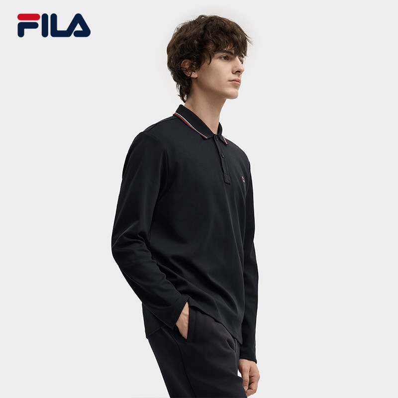 天FILA 斐乐官方男子针织长袖POLO衫2025春季新款商务休闲基础上衣