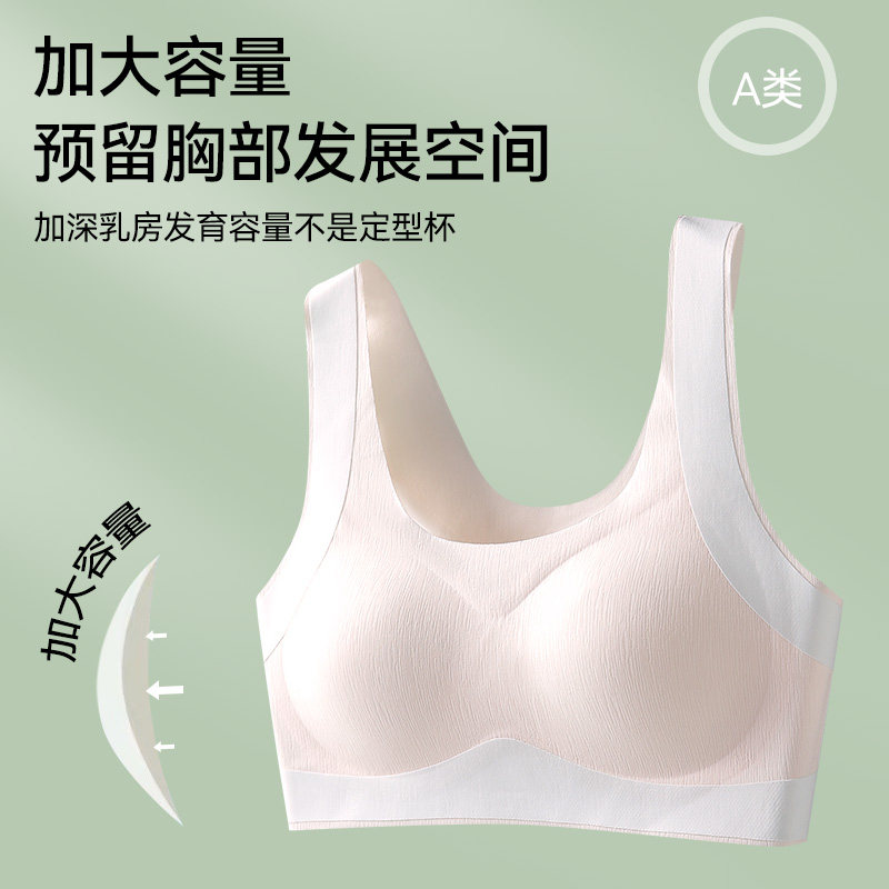 婷美运动发育期内衣女生初高中生少女文胸桑蚕丝无痕透气小背心