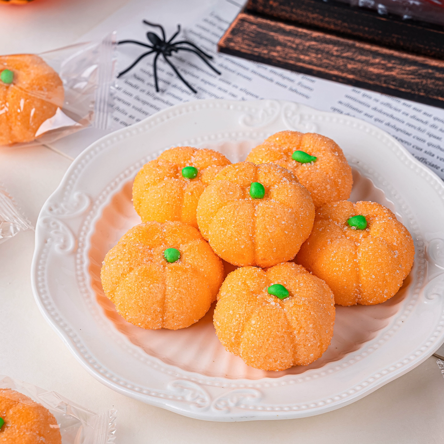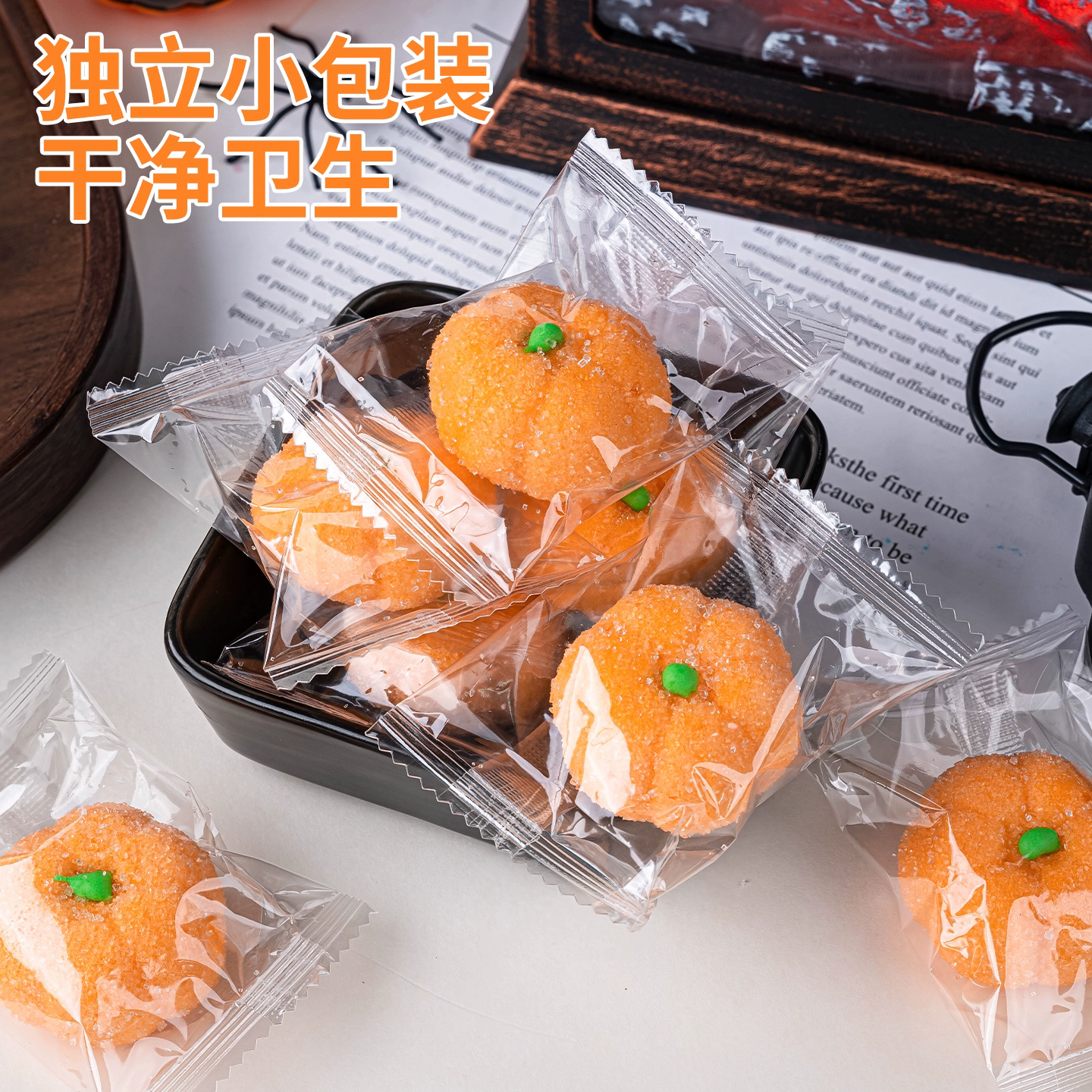 这款万圣节蛋糕装饰摆件是一款极具创意的甜品点缀,采用3D立体南瓜造型,为蛋糕增添生动氛围。采用棉花糖软糖制作,不仅口感绵软甜美,而且色彩鲜艳,南瓜造型更是与万圣节主题相得益彰。在烘焙过程中,这款装饰摆件可以增添无限创意,让你的蛋糕更具吸引力。无论是庆祝万圣节还是其他场合,这款装饰摆件都是不错的选择。