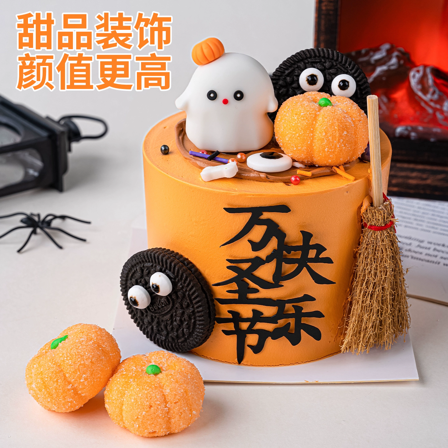 淘宝万圣节蛋糕装饰摆件3d立体南瓜造型棉花糖软糖果创意甜品烘焙点缀