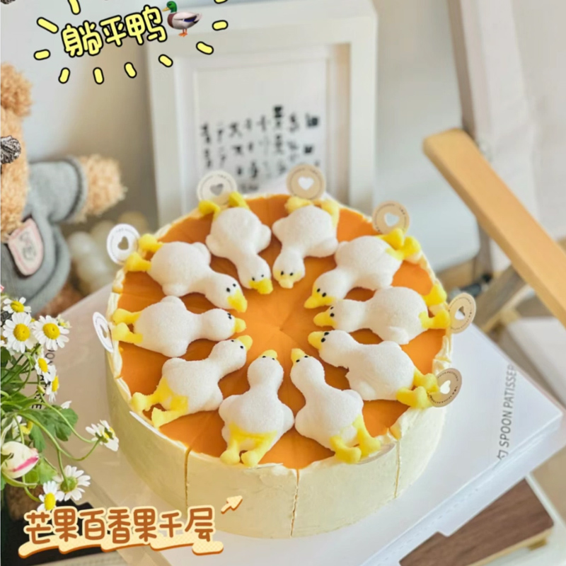 淘宝网红61儿童节躺平鸭棉花糖芒果千层切块蛋糕装饰摆件夏威夷伞插件
