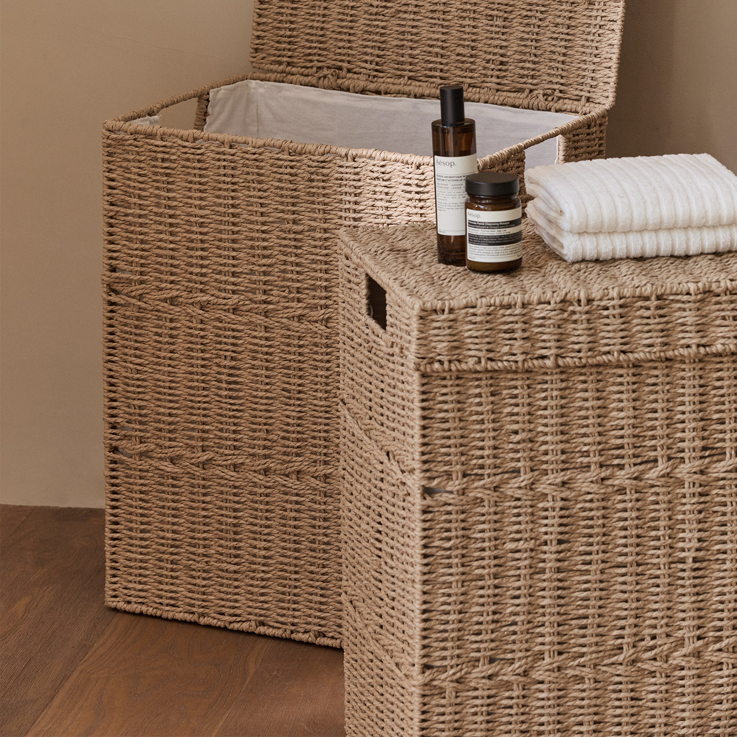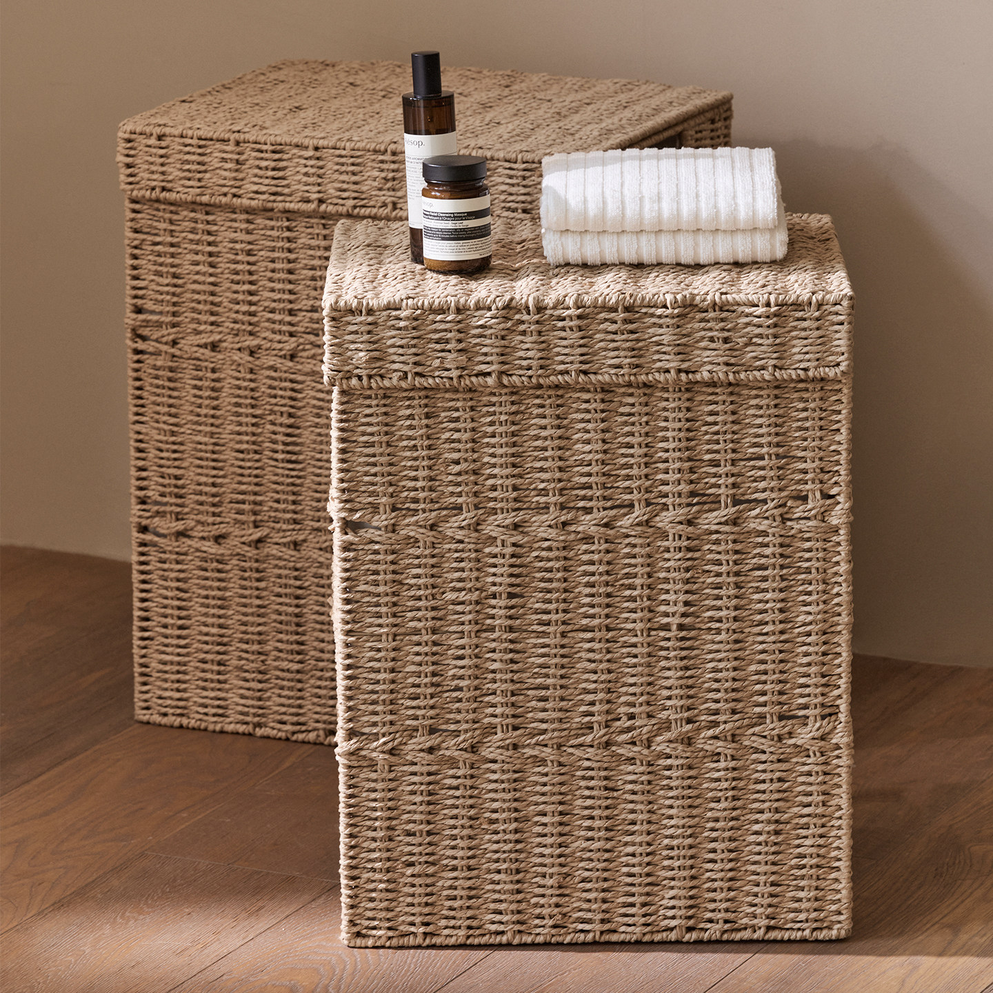 这款带盖脏衣篓采用天然草编或藤编工艺,环保透气,兼具美观与实用。其顶部设计有贴心盖子,有效遮挡异味,保持卫生间整洁清新。宽敞的收纳空间可容纳日常换洗衣物、毛巾等,也可用于收纳杂物,用途多样。结实耐用的编织结构承重力强,不易变形,底部加高设计防潮防霉。简约自然的外观风格,轻松融入北欧、日式或田园家居环境。无论是放在浴室、卧室还是洗衣房,都是提升居家整洁度的理想选择,让收纳更轻松,生活更舒心。