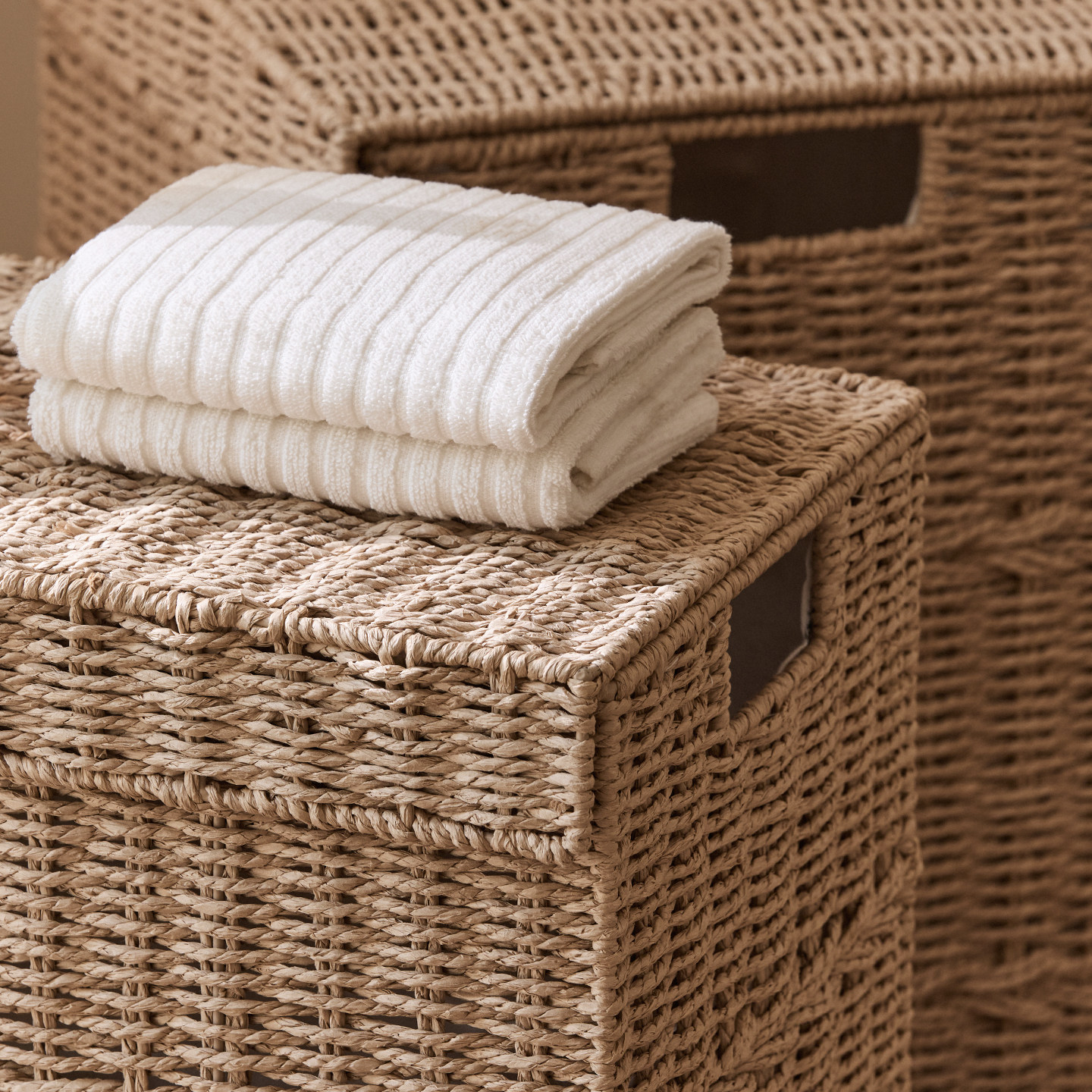 淘桂味源方形茶几电视柜收纳筐客厅仿藤编织收纳框杂物整理储物篮子