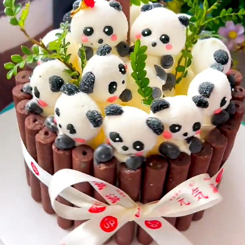 淘宝熊猫棉花糖蛋糕装饰围边巧克力棒儿童生日慕斯烘焙甜品摆件网红