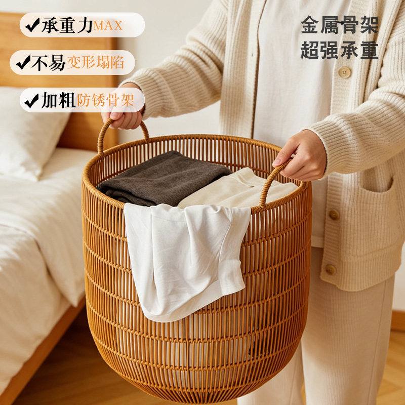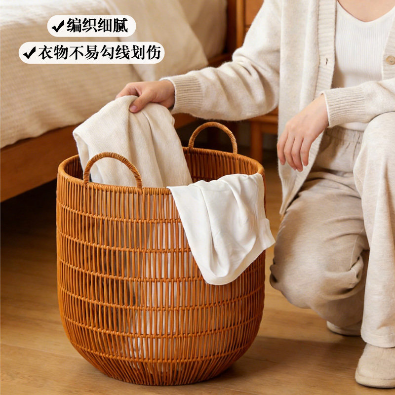 淘宝仿藤编防水高颜值家用脏衣篮脏衣服收纳筐篓卧室脏衣筐浴室洗衣篮