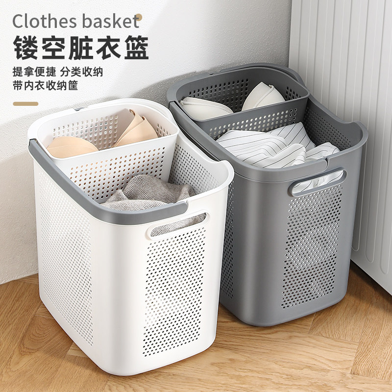 淘家用手提式脏衣篮卫生间折叠大容量脏衣服多功能镂空收纳筐脏衣篓