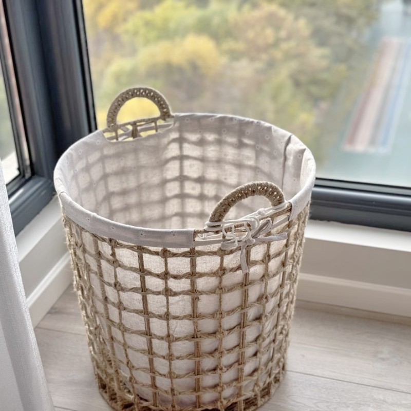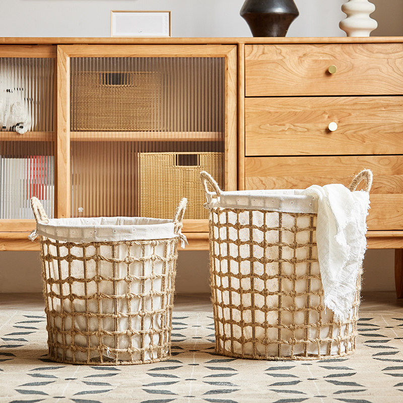北欧藤编草编布艺收纳筐衣物零食杂物收纳篮家用衣服玩具脏衣篮