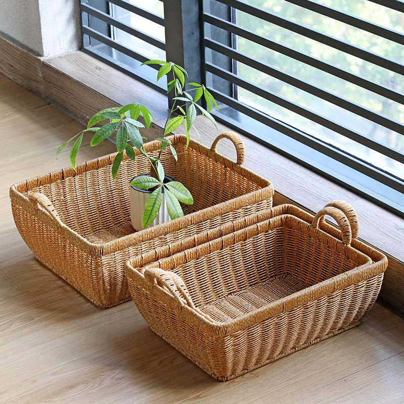 淘海草收纳筐藤编草编储物篮竹编篮桌面杂物长方形编织置物整理篮筐