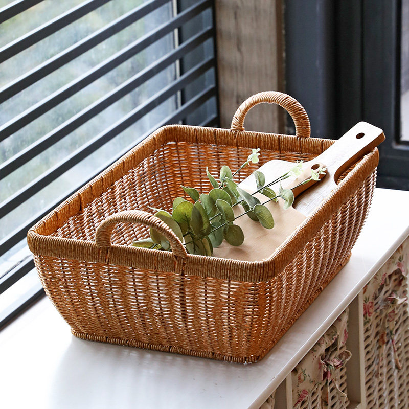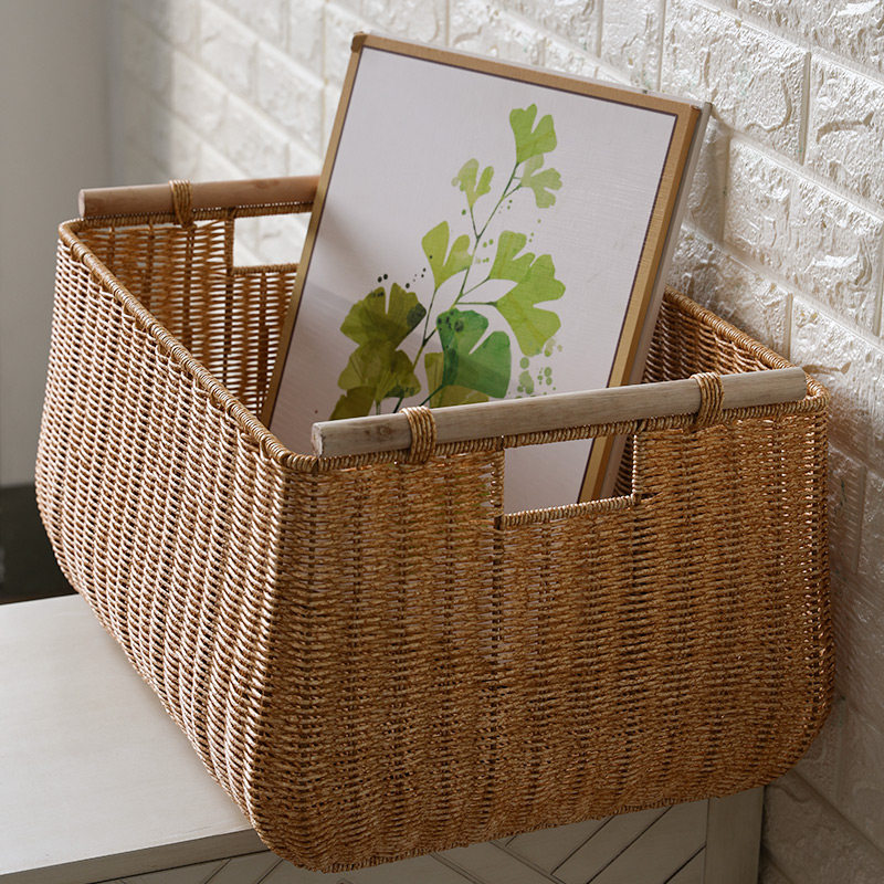 天Kens 收纳筐仿藤编 日式简约木把手客厅整理筐 零食筐杂物收纳篮