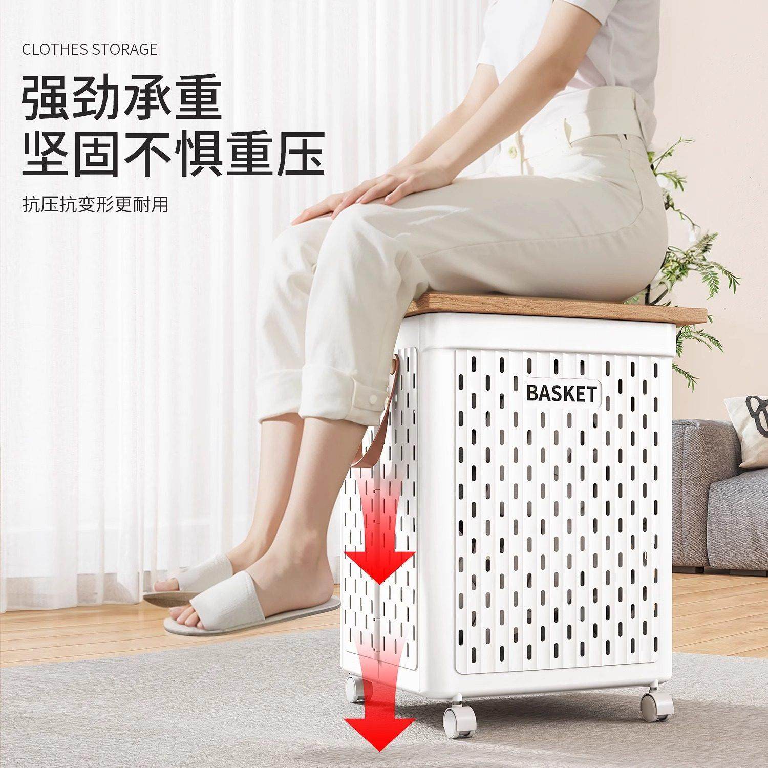 淘带盖洗衣篮加厚镂空藤编篮家用卫生间塑料编织收纳篮脏衣篮