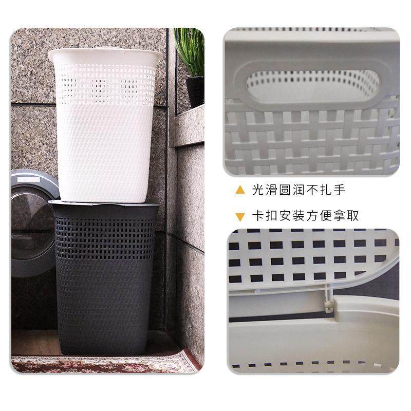 淘宝带盖洗衣篮加厚镂空藤编篮家用卫生间塑料编织收纳篮脏衣篮