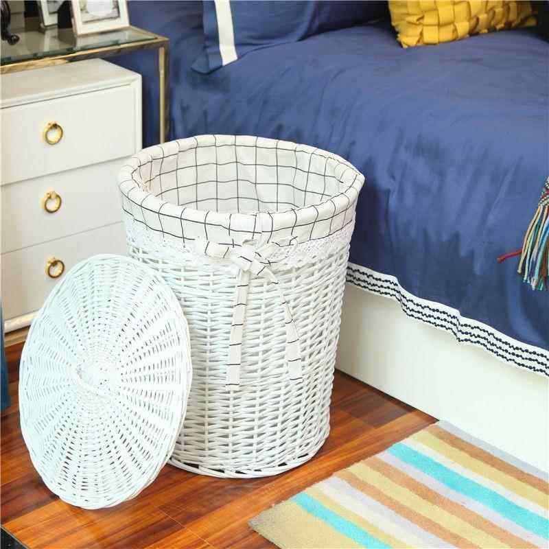 淘带盖洗衣篮加厚镂空藤编篮家用卫生间塑料编织收纳篮脏衣篮