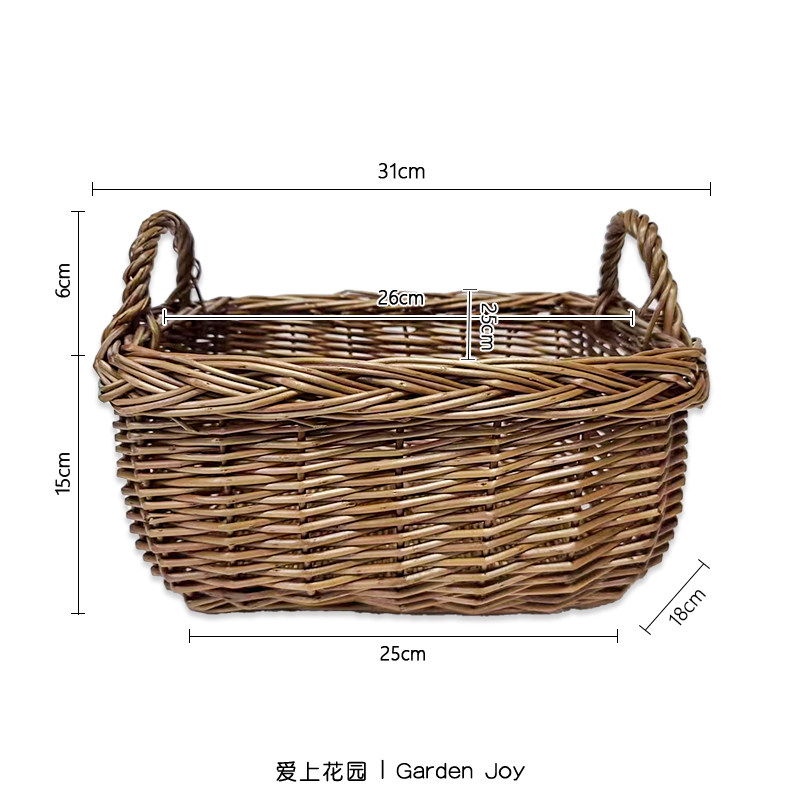 淘宝爱上花园|手工柳编 家居装饰收纳篮花篮挂篮 双耳方块收纳篮88