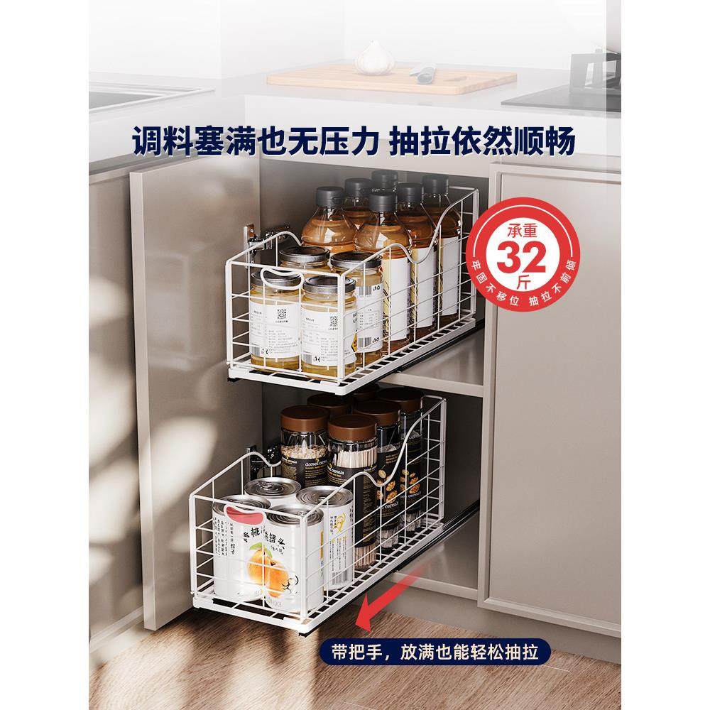 天抽拉式调料架台式油盐酱醋收纳架窄缝抽拉篮双层置物架夹缝收纳柜