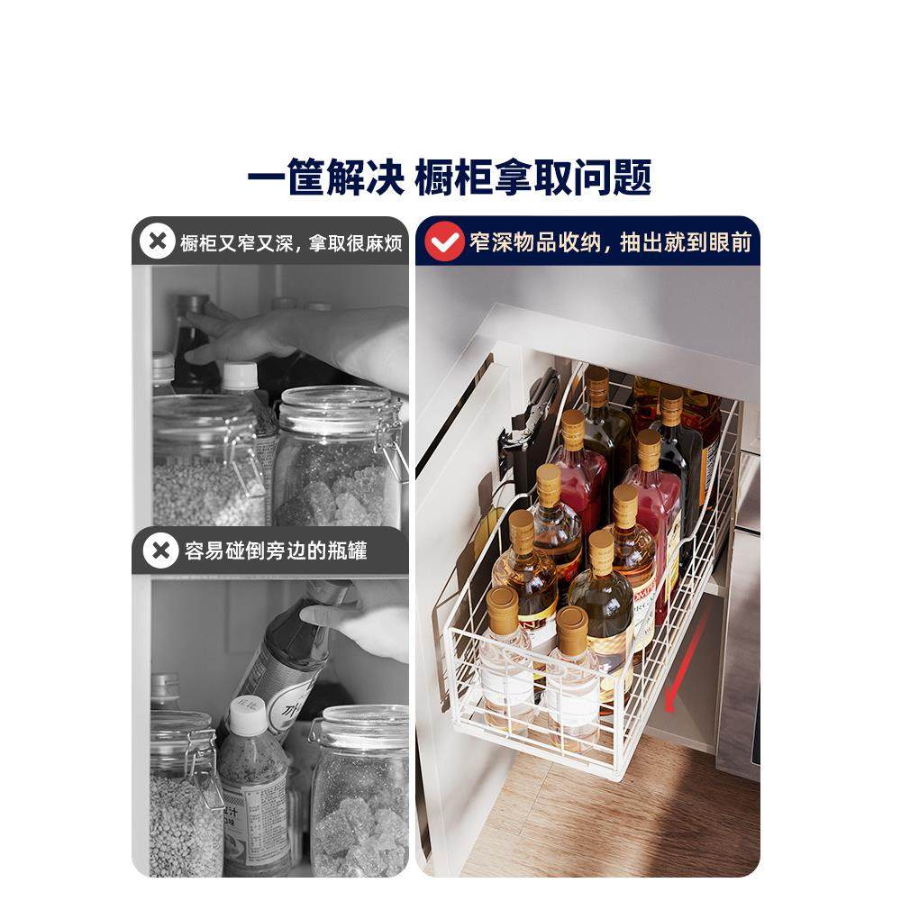 淘宝御仕家调料极窄拉篮收纳架子橱柜内厨房窄柜深柜抽屉抽拉式置物架