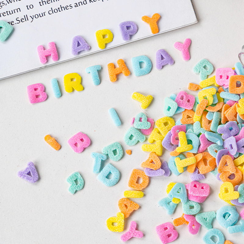 淘宝26个英文字母彩色装饰糖生日蛋糕装饰烘焙甜品卡通糖珠糖针点缀