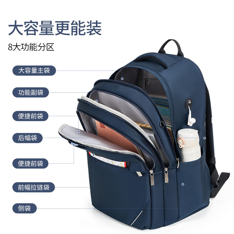 爱华仕剑桥系列双肩包,专为初高中及大学生设计,兼顾实用与时尚。采用轻量化材质,背负舒适不压肩,大容量主仓可容纳15.6英寸笔记本电脑、课本、文具等学习用品,多层分隔收纳井然有序。加宽透气背垫与可调节肩带,有效缓解长时间背负压力。外观简约大气,多色可选,适配校园、通勤、短途出行等多种场景。防水耐磨面料,耐用易打理,细节处彰显品质。无论是日常上课还是外出实习,爱华仕剑桥系列都是学生党的理想之选,轻松应对学习与生活的多重需求。