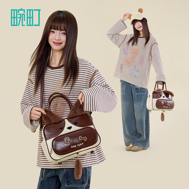 天猫畹町趣味小狗包少女大学生上课多用斜挎包创意耳朵造型单双肩背包