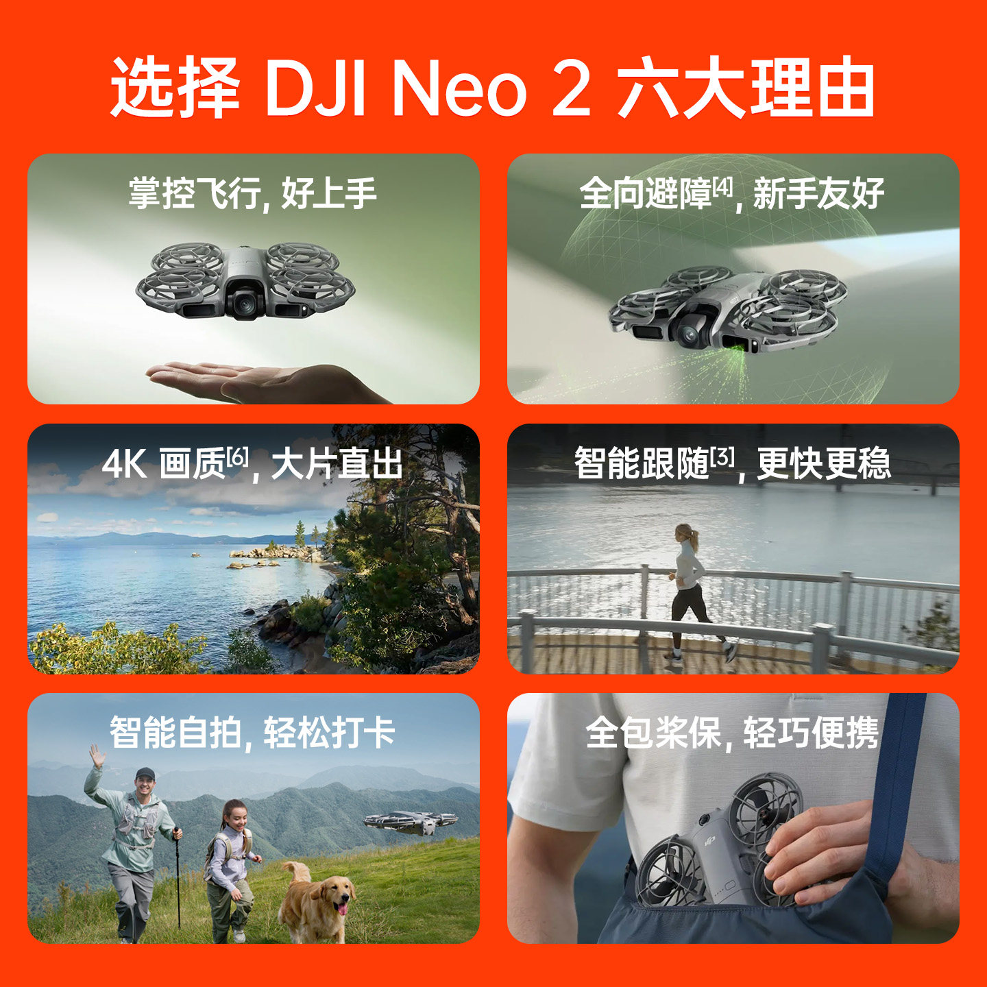 天猫新品上市&京东顺丰!大疆 DJI Neo 2无人机专业航拍器智能穿越4K高清飞行相机遥控学生亲子迷你掌上官方正品