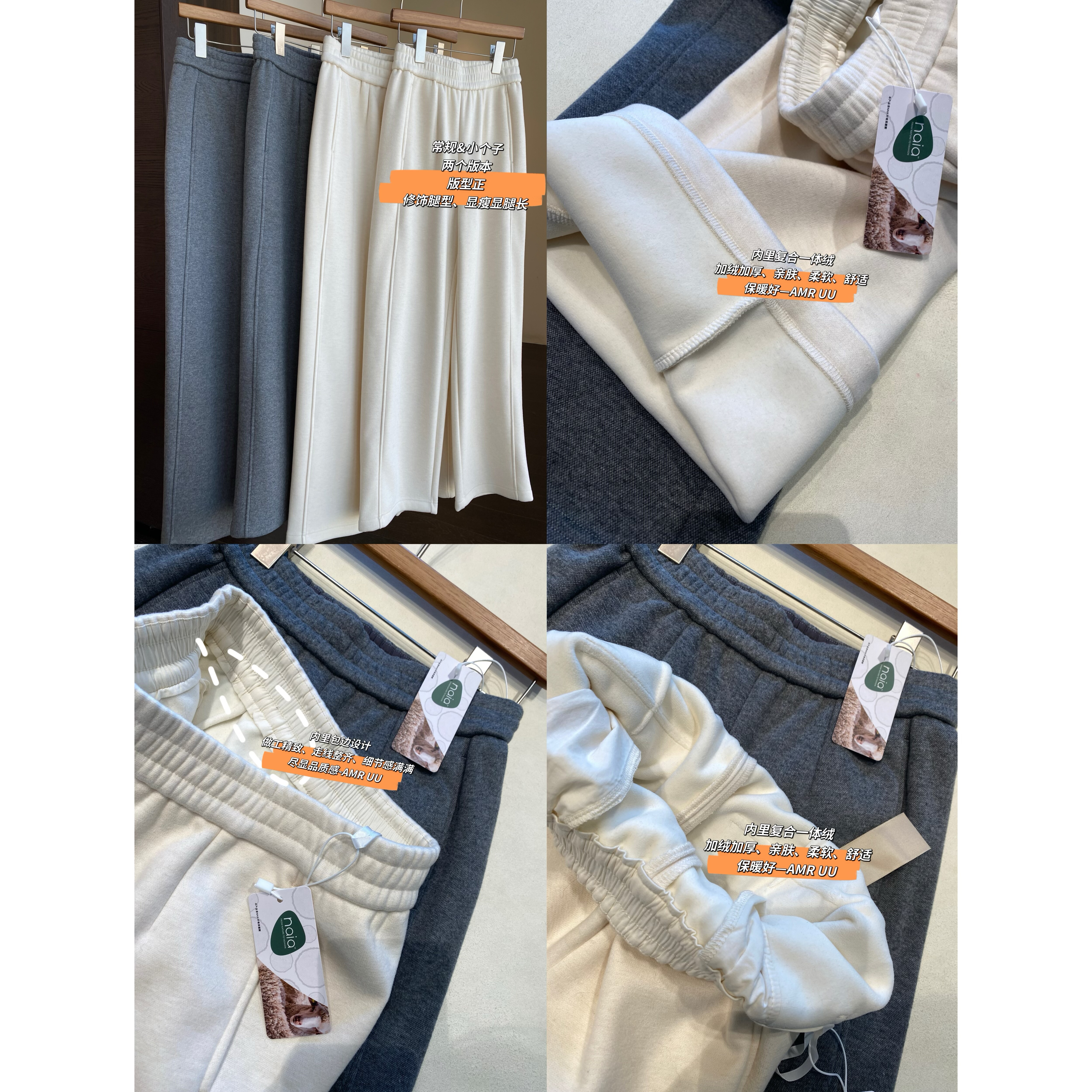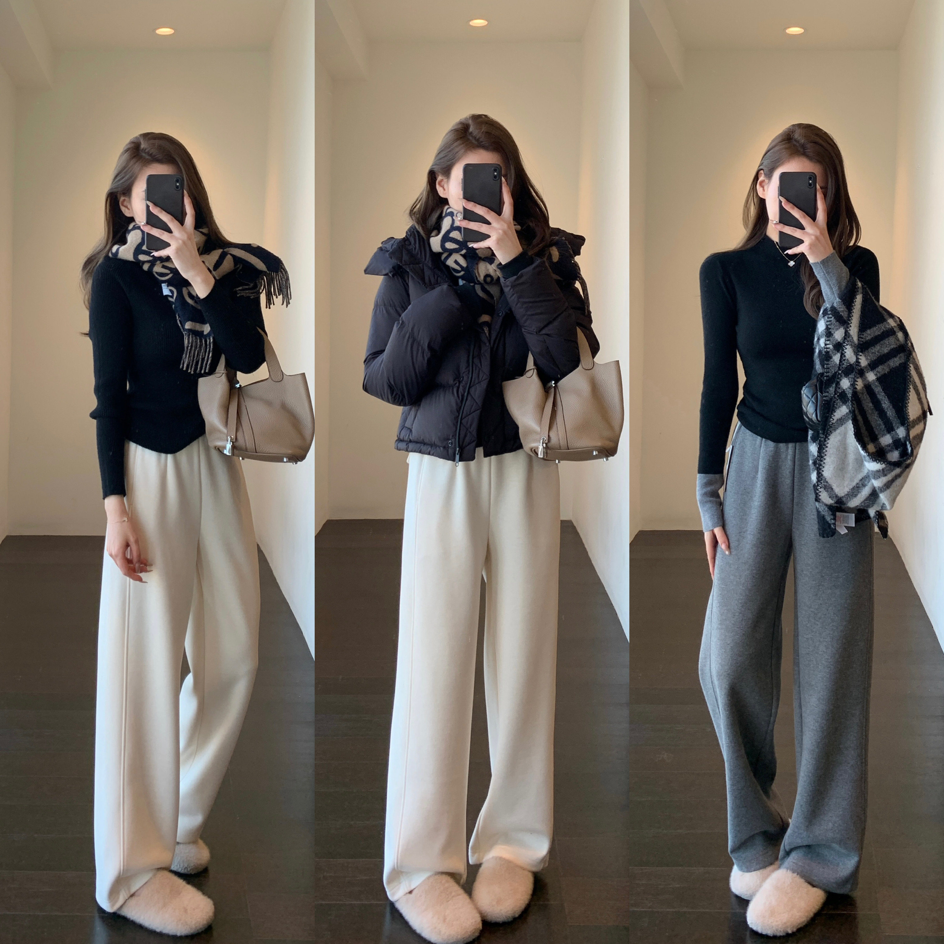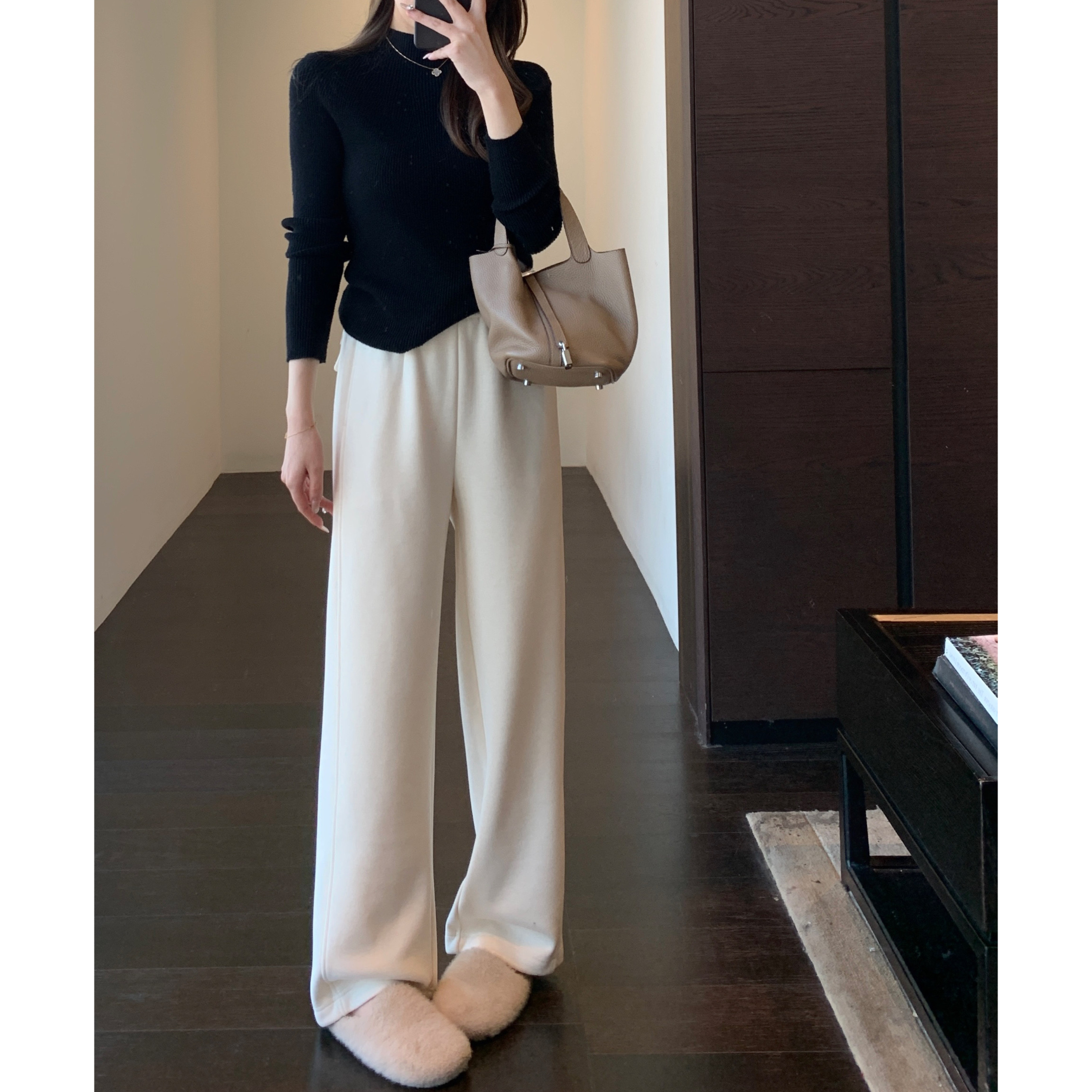 淘宝AMR UU◆重磅醋酸羊毛加绒加厚高腰白色窄版直筒阔腿裤女秋冬新款