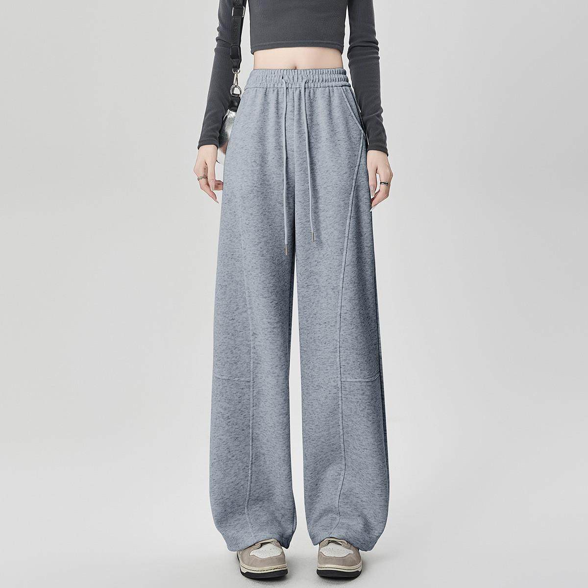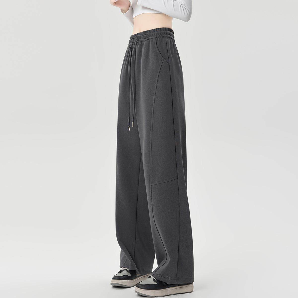 阔色灰色蝴蝶结绑带休闲裤直筒裤女2025秋冬季新款高腰拖地长裤子