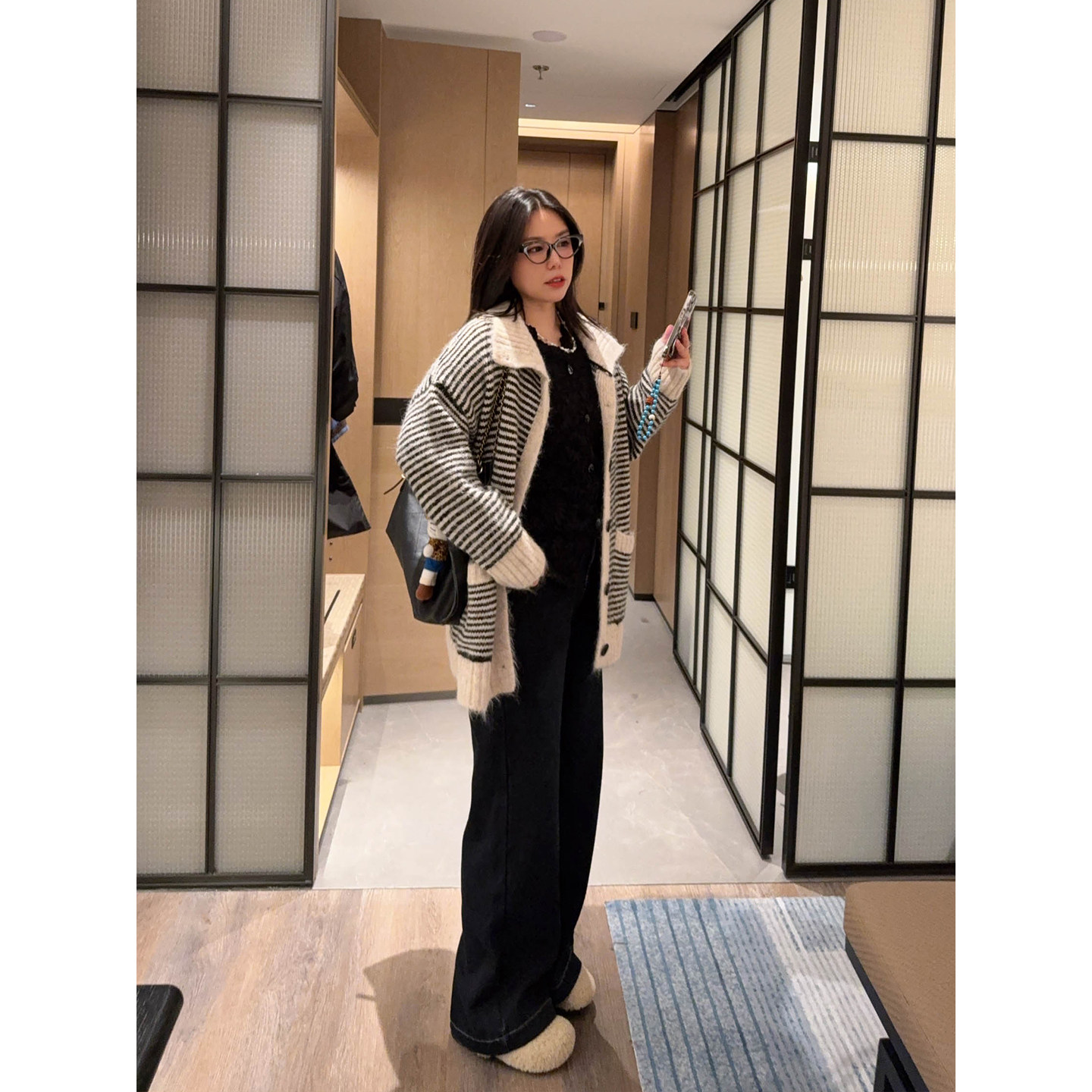 韩氏伊人醋酸羊毛窄版直筒裤女2025冬款加厚高腰垂感休闲阔腿裤子