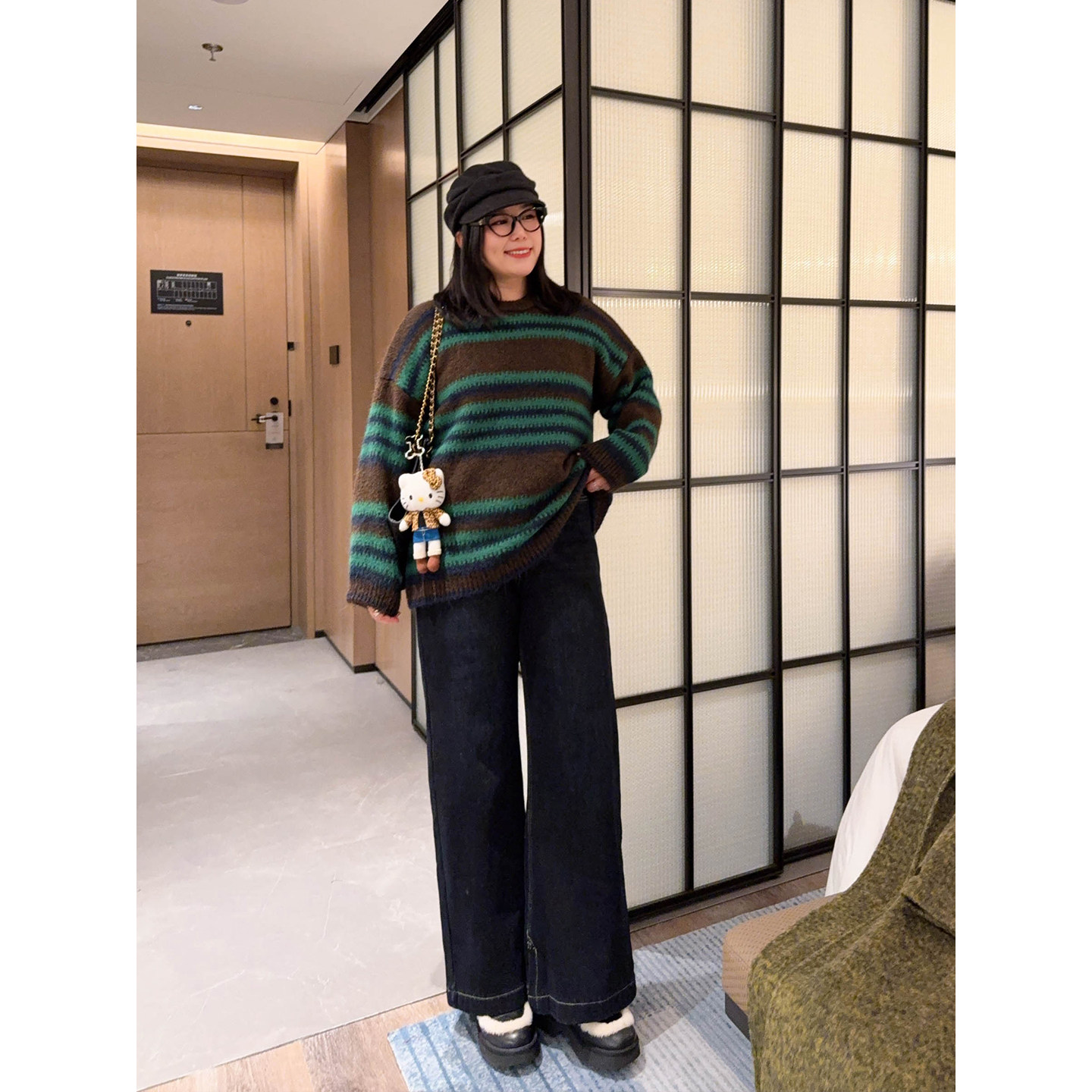 淘宝VOGANA戛纳家大码女装筷子腿复古显瘦宽松加绒厚牛仔直筒裤双版本