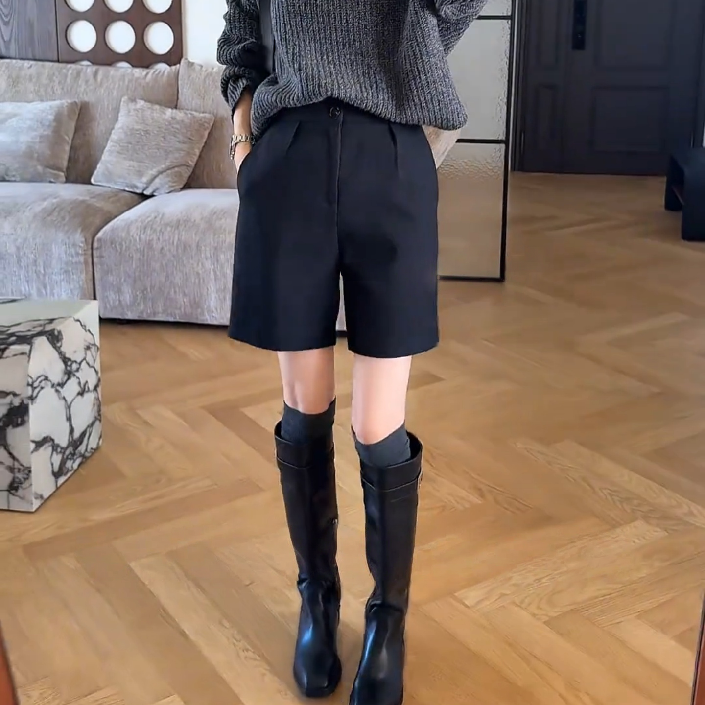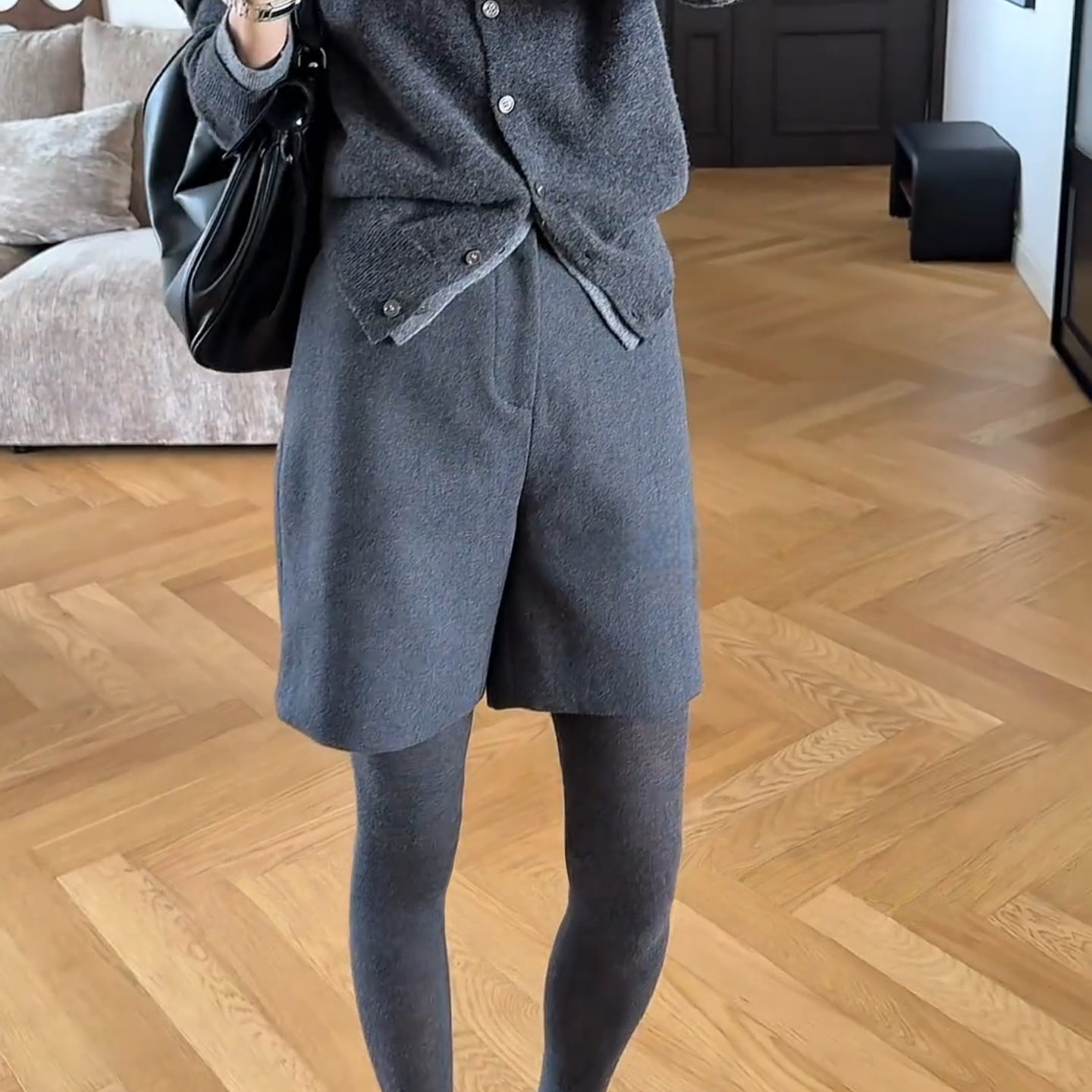 淘宝冬季新款高腰毛呢短裤女大码宽松显瘦直筒中裤靴裤梨型身材四分裤