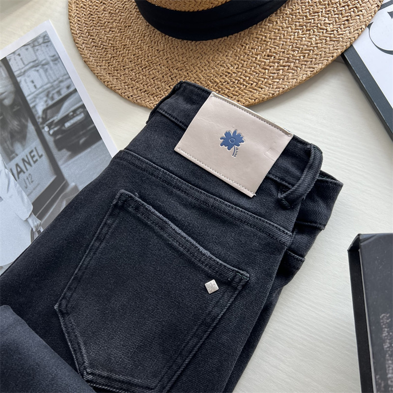 YANGLE 经典百搭烟管牛仔裤女2025秋冬新款九分抓绒窄版直筒裤