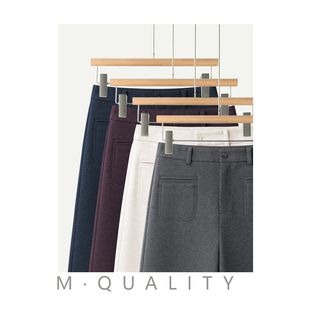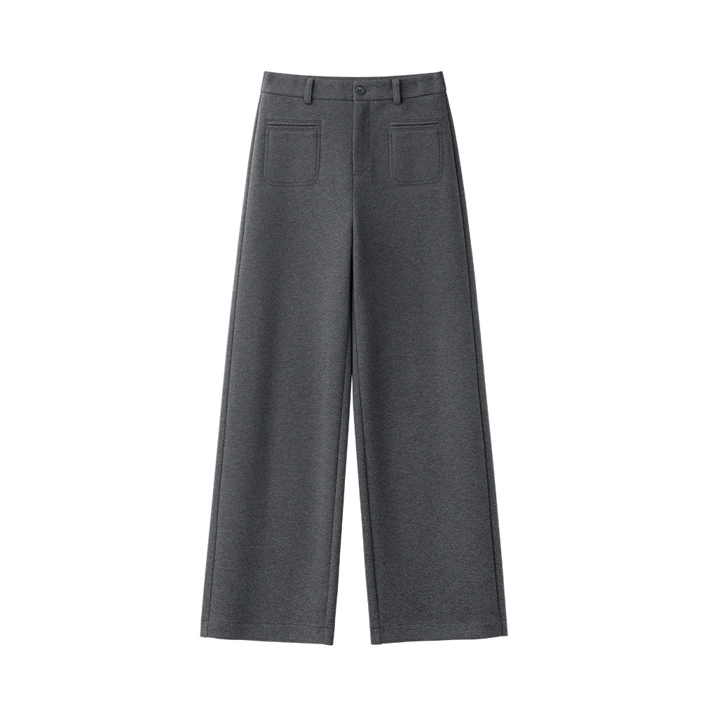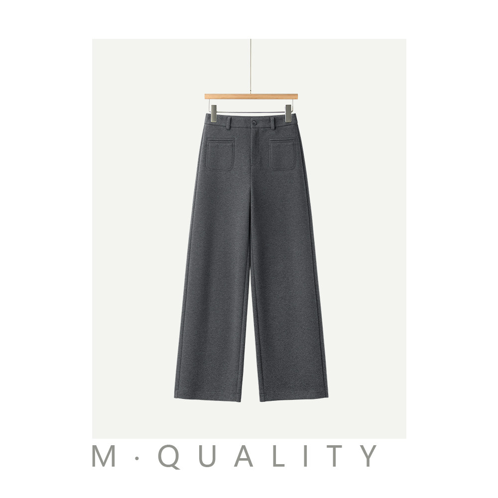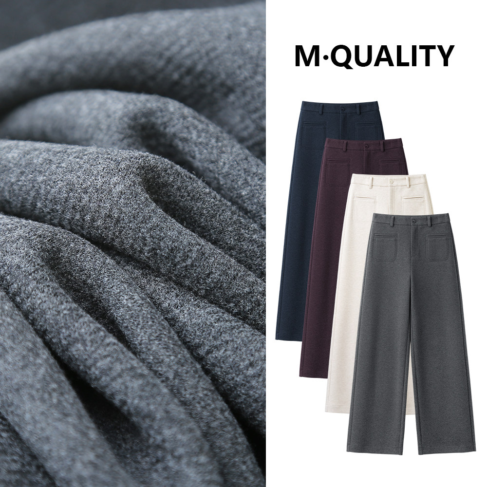 天猫韩氏伊人醋酸羊毛窄版直筒裤女2025冬款加厚高腰垂感休闲阔腿裤子